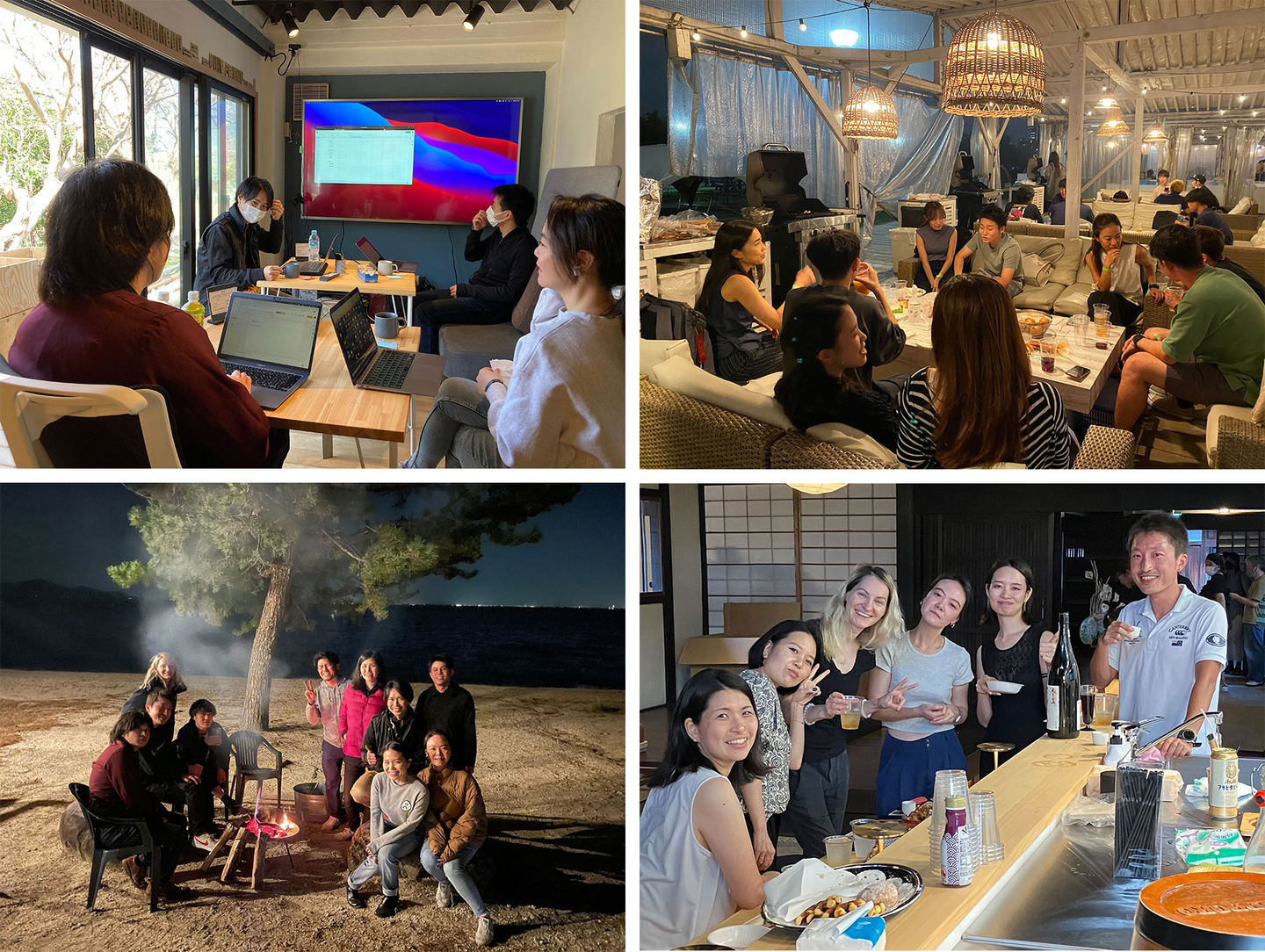 対面のアポイントメントやイベントがない時は、毎日オフィスか自宅でPCに向かって作業をしているので、たまにはいつもと180度違う場所で仕事をしたい…その上、他社員との親睦を深められたり、色々な話題をざっくばらんに話したり、イノベーションに繋がるアイデアがひらめくなら一石二鳥…ということで、オフィスとは違う場所(キャンプ場、山頂のホテル、アミューズメントパークなど)を仕事場にし、立場に関係なくフラットに、長期的な目線での目標やビジョンについて話をする日=「オフサイトミーティング」が、部署ごとに定期的に行われます!