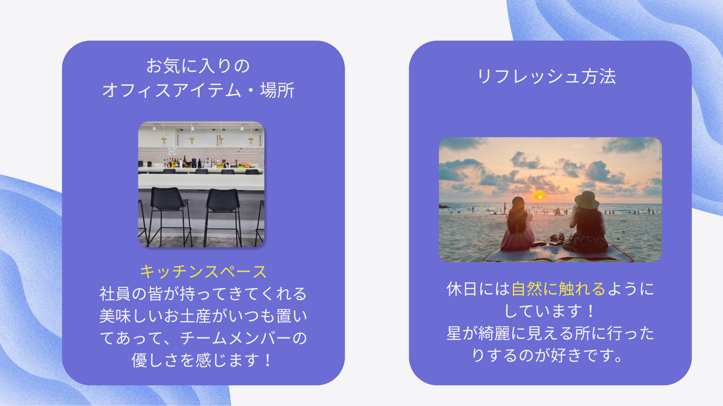 Chisa:自由なところ!色々な意味で自由だと思います。もちろん働き方もそうですが、業務スタイルとやりたいことにおいても自由度があります。自分の担当するVerticalで企業パートナーとスタートアップをどう支援するかを、企業側の特性や経験を踏まえてチームで話し合って決めていきますが、多様な経験を持ってサポートしてくれるチームメンバーが揃っているので、様々な挑戦が可能です。難しい所もありますが、自分がやりたいことに挑戦させてもらえて、それをチームがサポートしてくれる良い環境が整っていると思います。