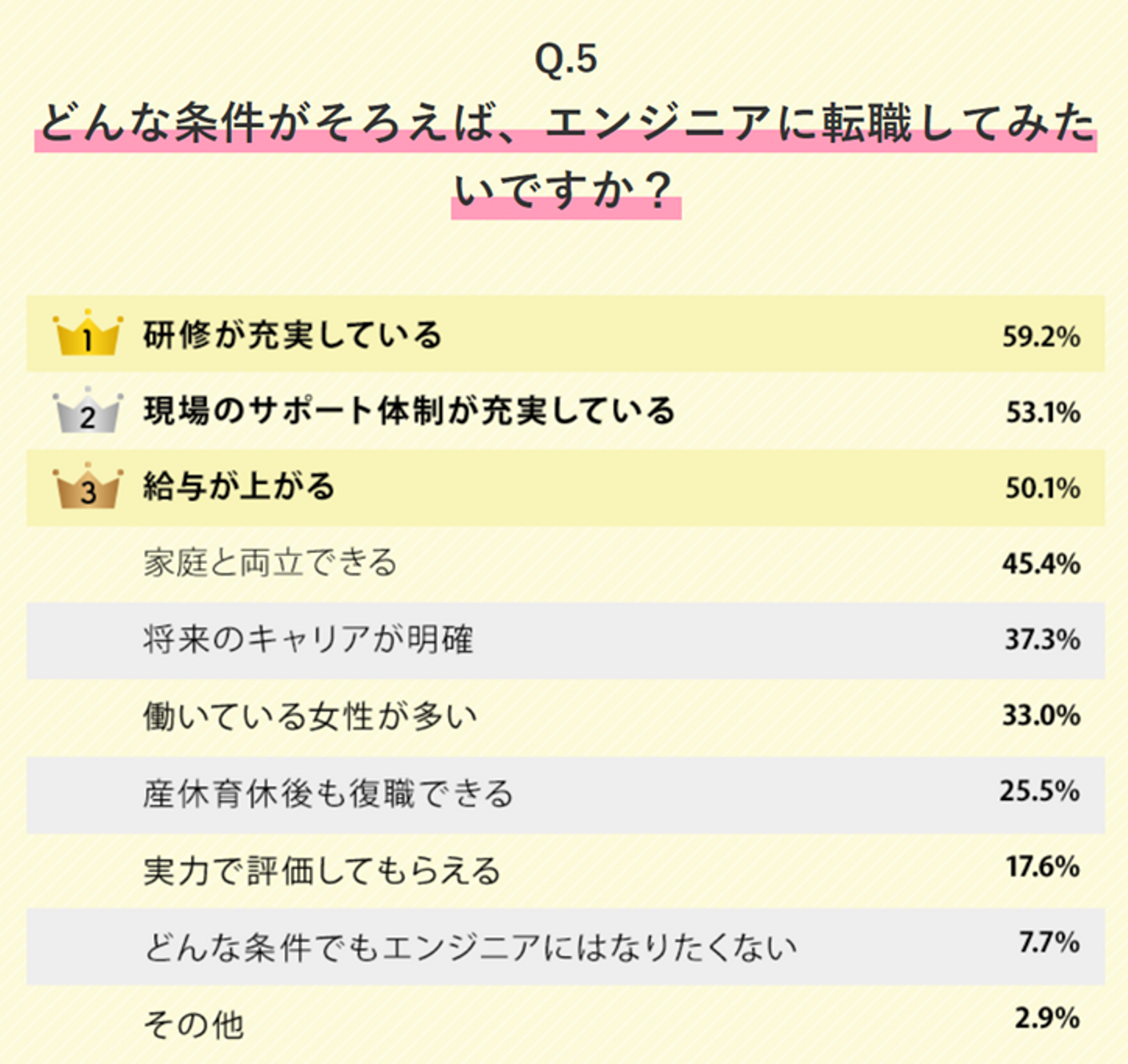 上記の3点があることでエンジニアとしての一歩を踏み出すことを検討してみようと思える方が多いようです。