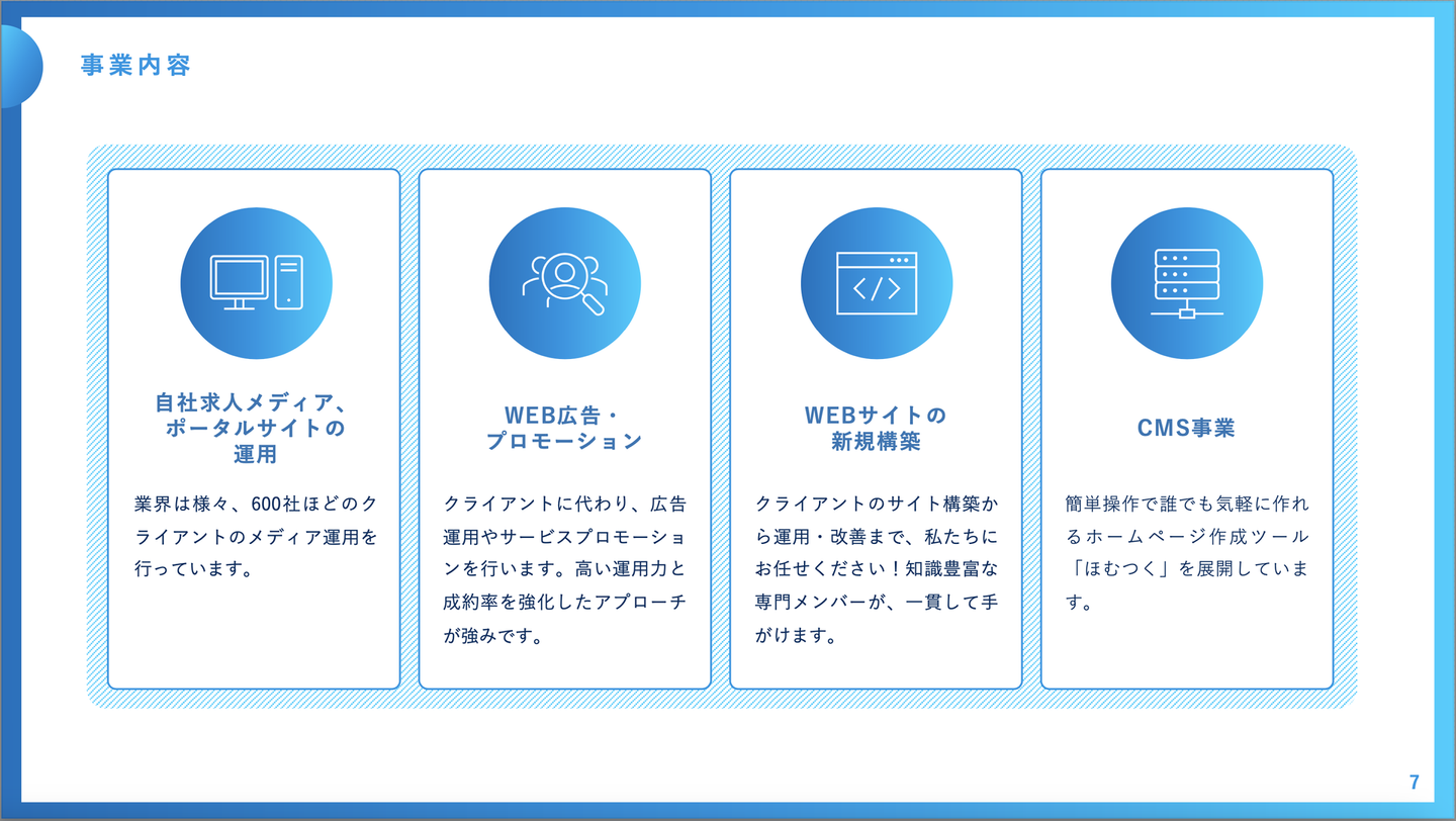 こちらは弊社の採用ピッチ資料のうちの1ページです。