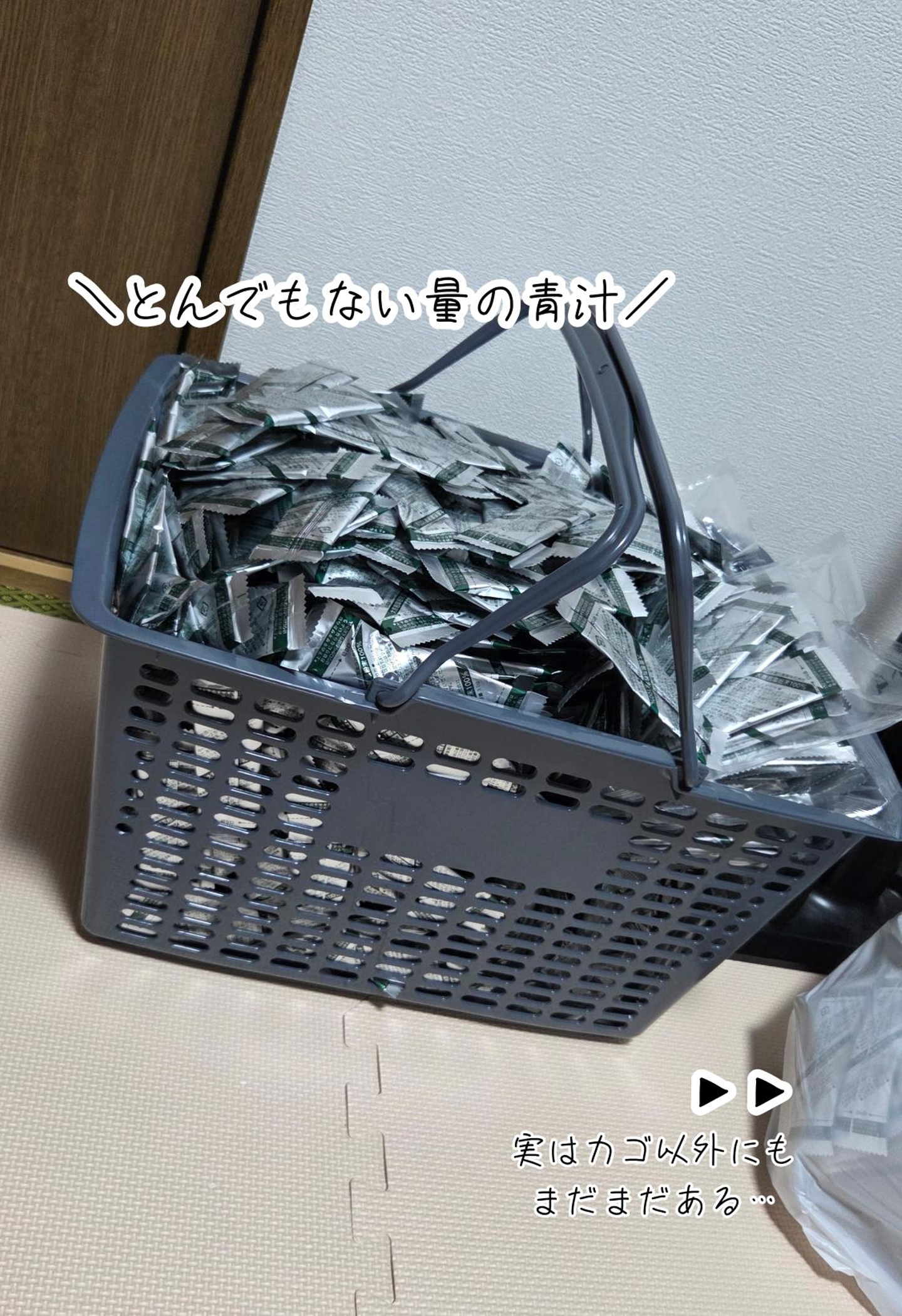 いやいや、嬉しいのはわかるけど、ダンボール1個にパンパンに詰まった青汁を渡された娘はどうすればいいのよ!?