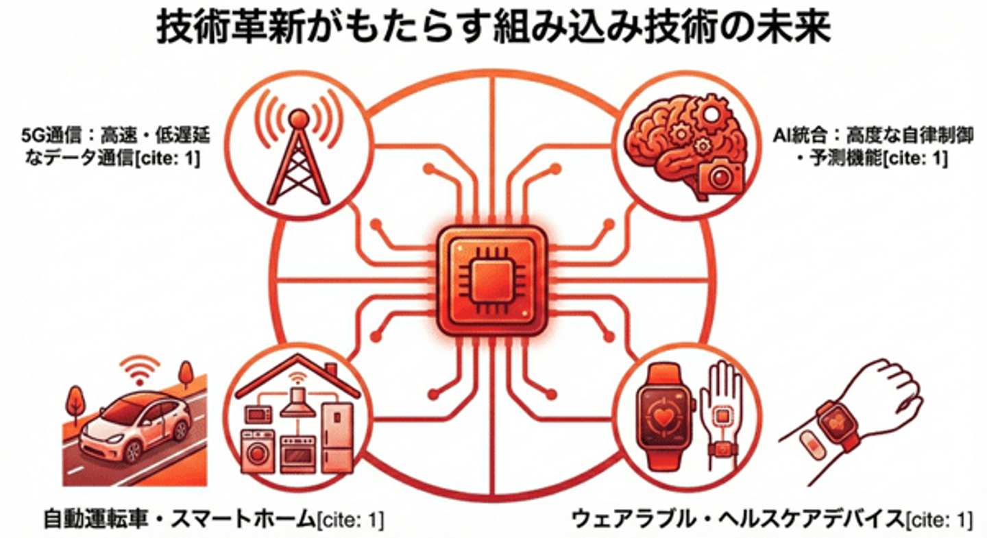 ● AI・機械学習: 組み込みシステムにAIを統合し、エッジ側で高度な判断を行う技術への期待が高まっています。