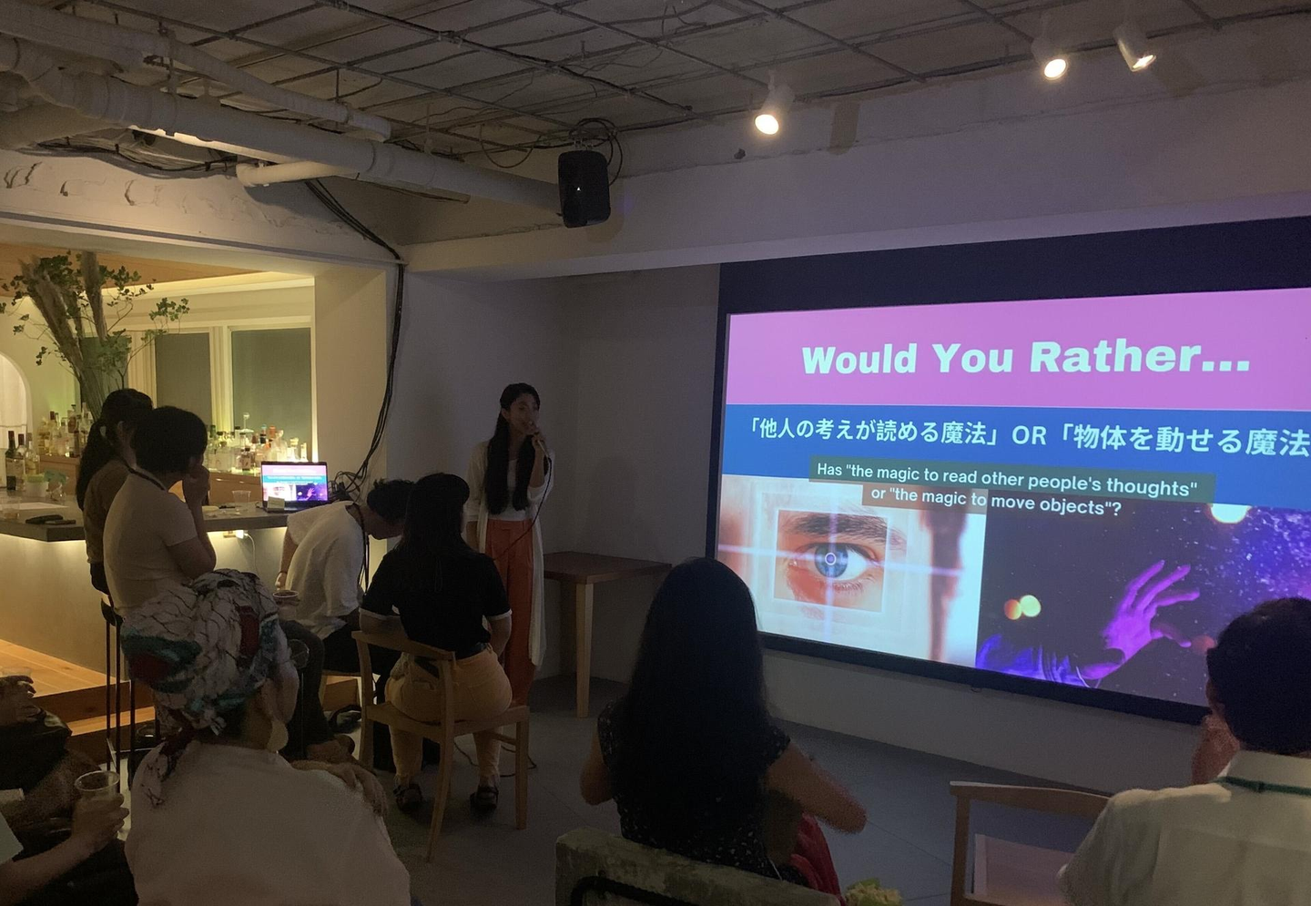イベント中の様子…上映する映画にまつわるクイズや解説も行い、来場者の方と交流を行いました。
