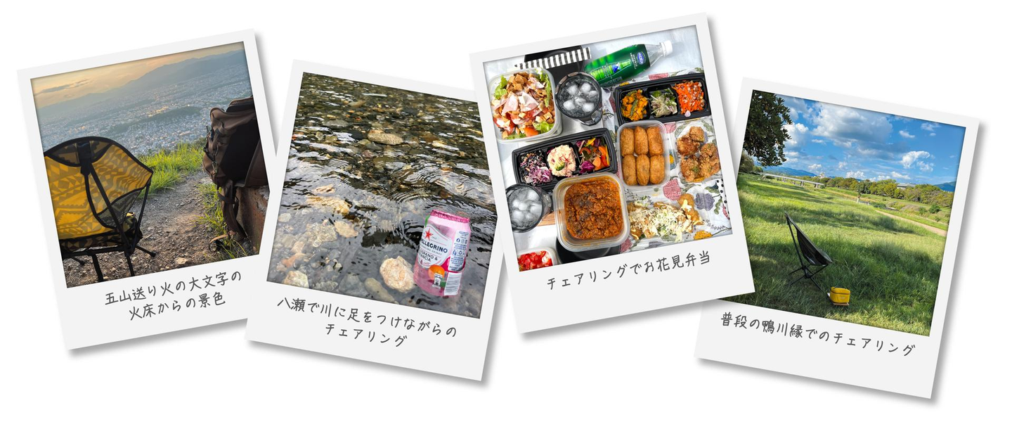 休日は主に鴨川付近や出掛け先でチェアリングをします。