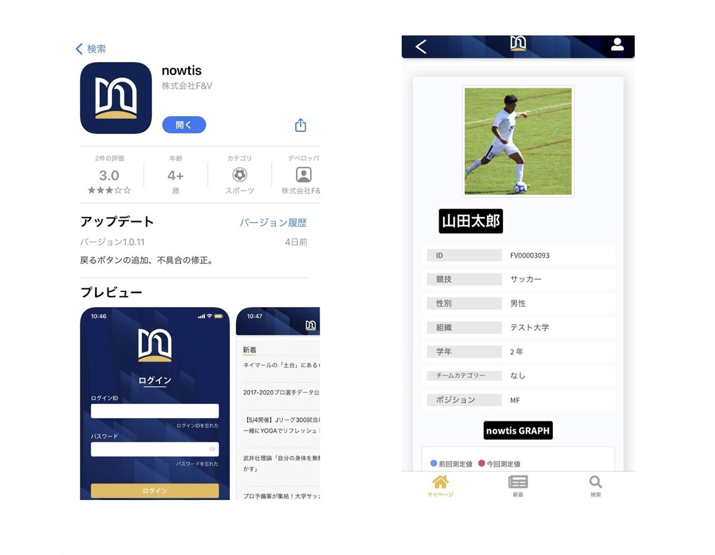 アスリートとして高いパフォーマンスで活躍できるよう、フィジカルデータを蓄積しアプリ内で各チーム毎の数値を比較できるサービス「nowtis」を展開しています。