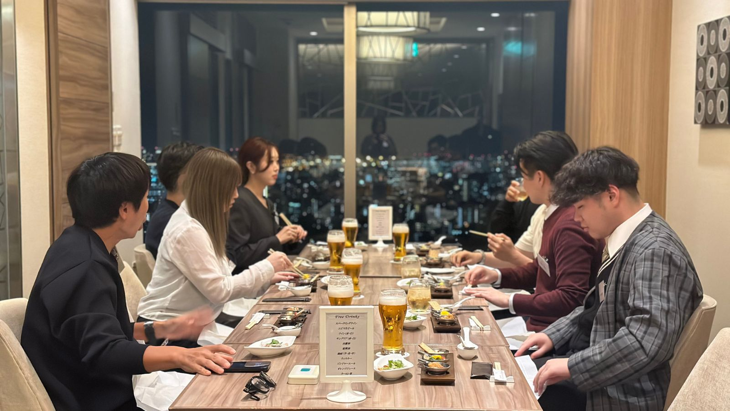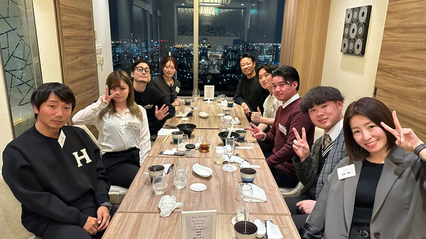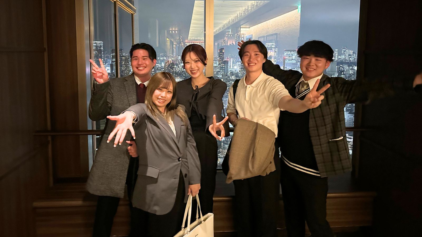 今回はフレッシュな5名の内定者が参加。夜景に負けないキラキラした笑顔で会場は終始和やかムード一色でした!