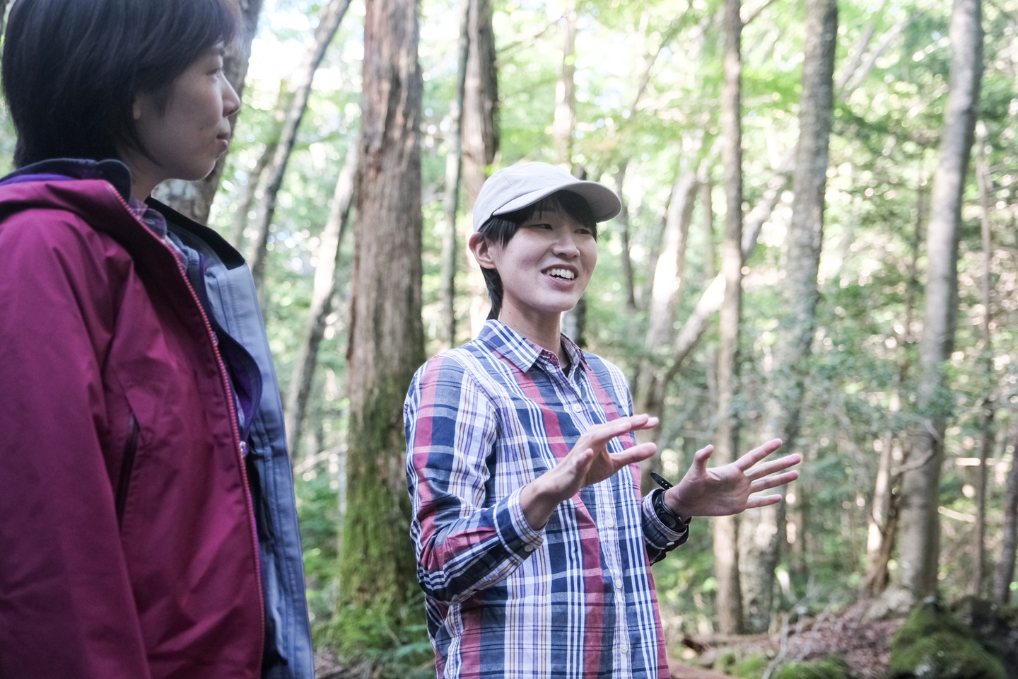 入社したての頃は、針葉樹と広葉樹の違いも上手く説明できないくらいの知識の薄さだったけれど、毎日のように自然の中へ足を運び、先輩のガイドについて現場を知り、見よう見まねで仕事を覚えていくうちに、感覚的に“森の違い”が見えるようになってきた。フィールドで見たことと、本で調べたことを重ね合わせ、情報を自分の中に落とし込んでいく。自然の知識が増えると同時に、自然にはまだまだ未知の世界が広がっていることも知った。自然の理を知るうちに、自分と自然との距離はじわりじわりと近くなっていった。自分の枠を壊しても壊しても、世界は広がり続ける。自然の中で発見したこと、感じたことは、プログラムの中で参加者に自然の魅力を伝えるときに大切な核となっていく。自分の経験値が上がれば上がるほど、提供できるものの価値も高まっていく。