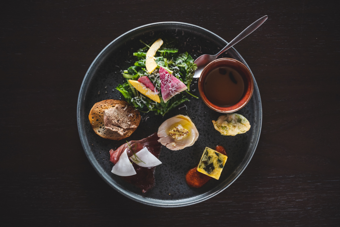 季節や日によってメニューは変わりますが、西伊豆の新鮮な魚介や元々火山地帯であった豊かな土壌で育った伊豆野菜などをふんだんに使用しています。