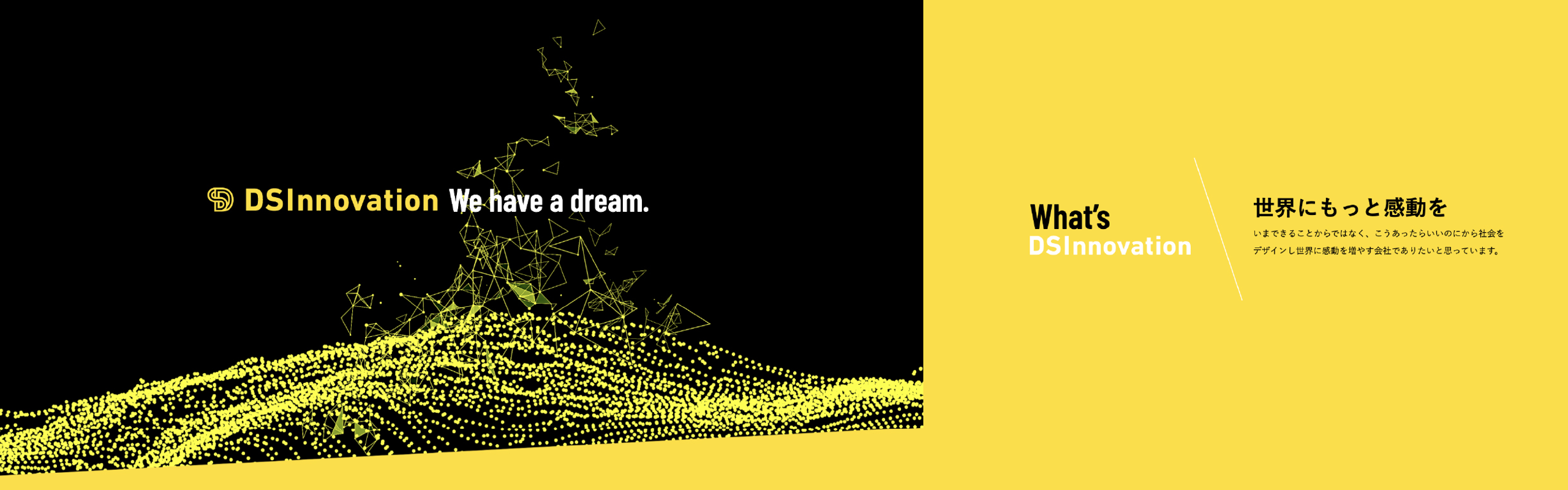 これまでの「データをいかに取得するか」という発想から、「ユーザーが自分のためにデータを活用する」データ還元社会へ。 DSInnovationはデータを「ユーザーの意思」と捉え、高度なデータ研究・事業開発を展開。ユーザー自身に届けることを志向しています。そんな社会を実現したいと共感いただいたクライアントとは常に共に考え、社会と事業を魅力的にする次世代のサービスデザインを創造していきます。 データから人の興味を推測する時代から、意志としてのデータを繋いでいく時代を創り、適用していくことを目指しています。