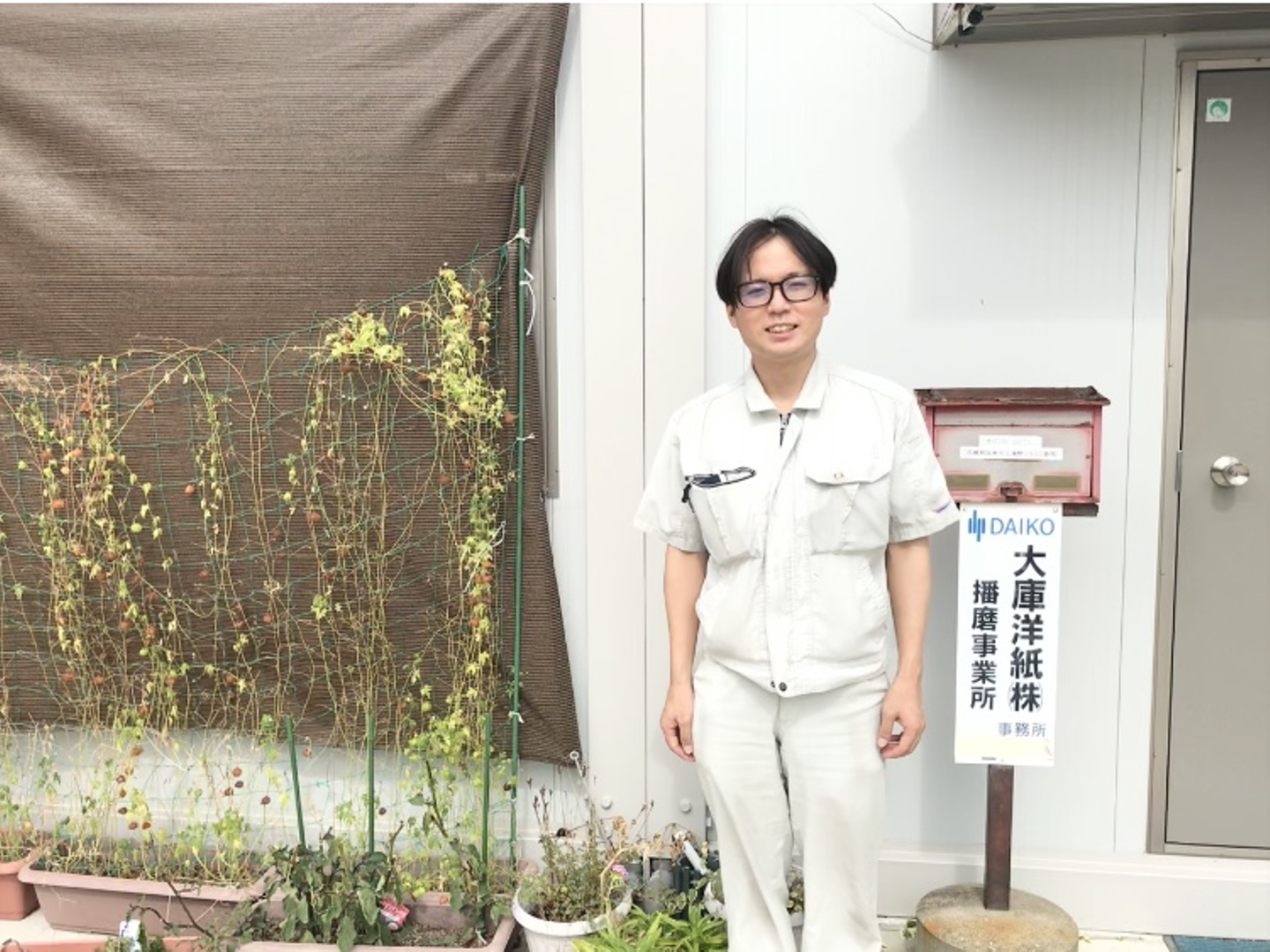 入社理由は家から近かったことと、休日が土日祝としっかりあって、なによりも仕事内容が自分に合っていると感じたからです。大庫洋紙は2社目で以前は鍵メーカの生産管理をしておりましたが、訳あって退職。現在の大庫洋紙にご縁が有り現在に至ります。