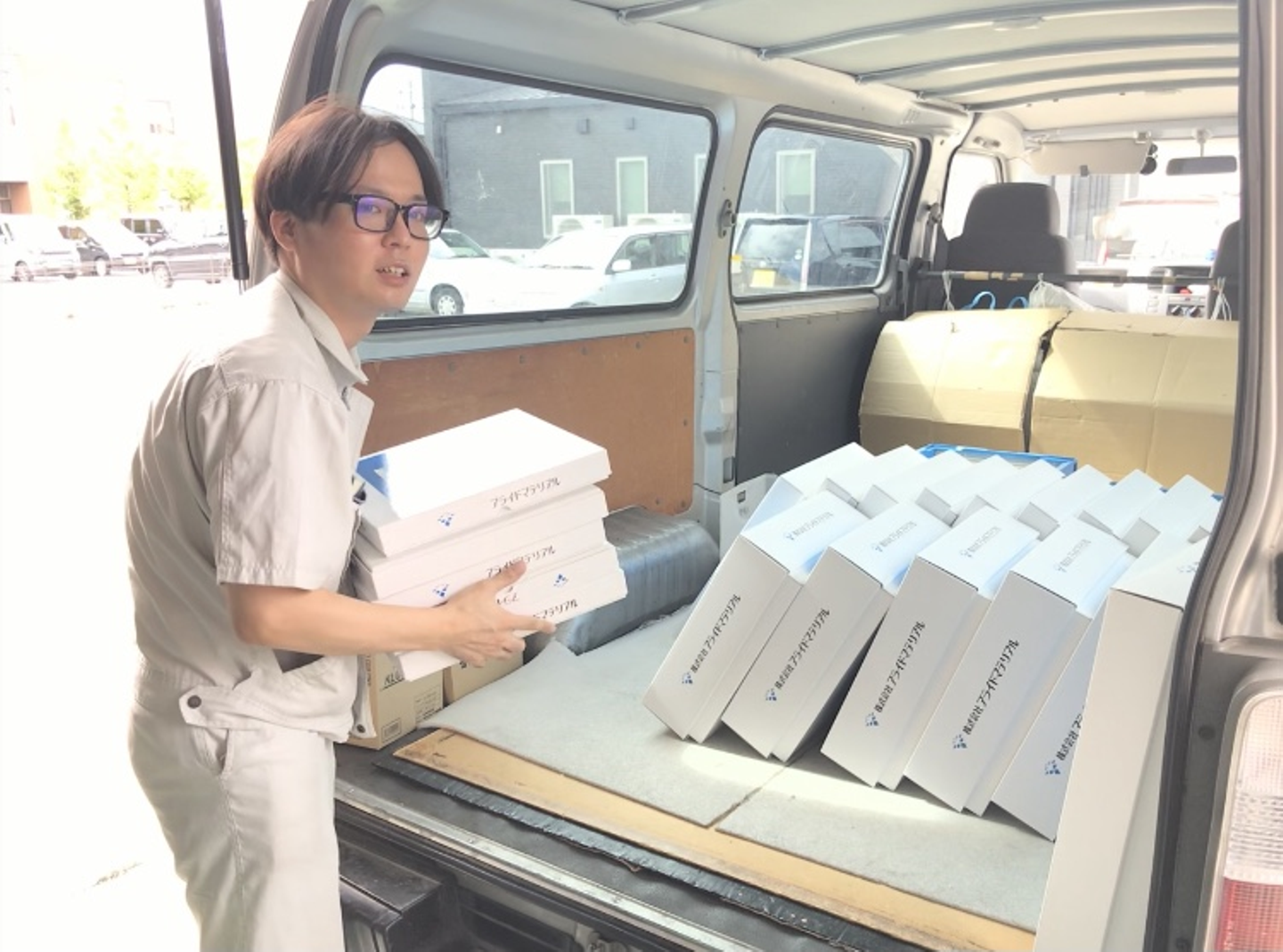 配達・事務作業・受注発注・見積作成・営業関係・商品製作など播磨事業所全体の運営に携わっております!播磨事業所では私含め5名で運営しており、それぞれ役割分担をし助け合いながら仕事をしています。
