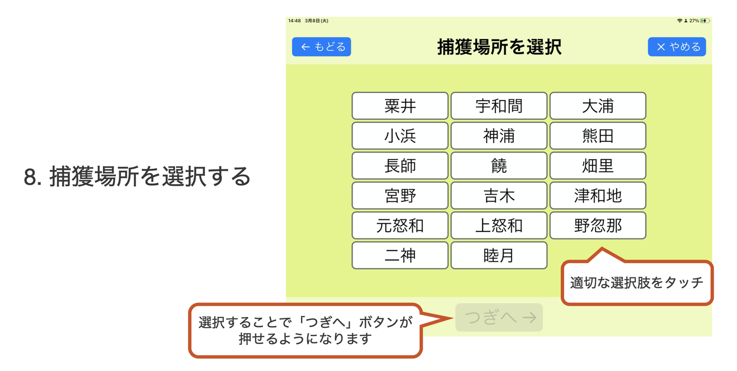 愛媛大学 農学系研究科の武山絵美教授と協働開発したiPadアプリです。愛媛県の「中島」という人口3000人くらいの島での使用をまずは想定しています。中島はみかん農業が盛んな島なのですが、イノシシの害獣問題に悩まされていて、その解決を目的にしたソリューションです。イノシシを捕獲した際には、写真を撮影して大きさなどを行政に報告する必要があるのですが、その一連の作業と管理をデジタル化しました。一言で言えば「イノシシの捕獲情報の管理システム」ですね。行政が過去の情報を管理しやすくなり、研究などの二次利用もできるようになります。