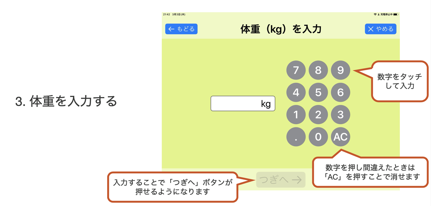 iPadの既存のUIに馴染みがないので、より使いやすいものをいちから作りました。たとえば、入力する場所をタップするとキーボードが下から出現するのがデフォルトの仕様なのですが、それに慣れていないユーザーが多いので、最初から入力キーを表示しています。また、日中の屋外で使われるケースがほとんどなので、ディスプレイへの照り返しがすごいんですよ。ですので、あえて文字を大きめに配置したり。現地の皆様のご意見をヒアリングして、一つひとつの機能を実装していきました。
