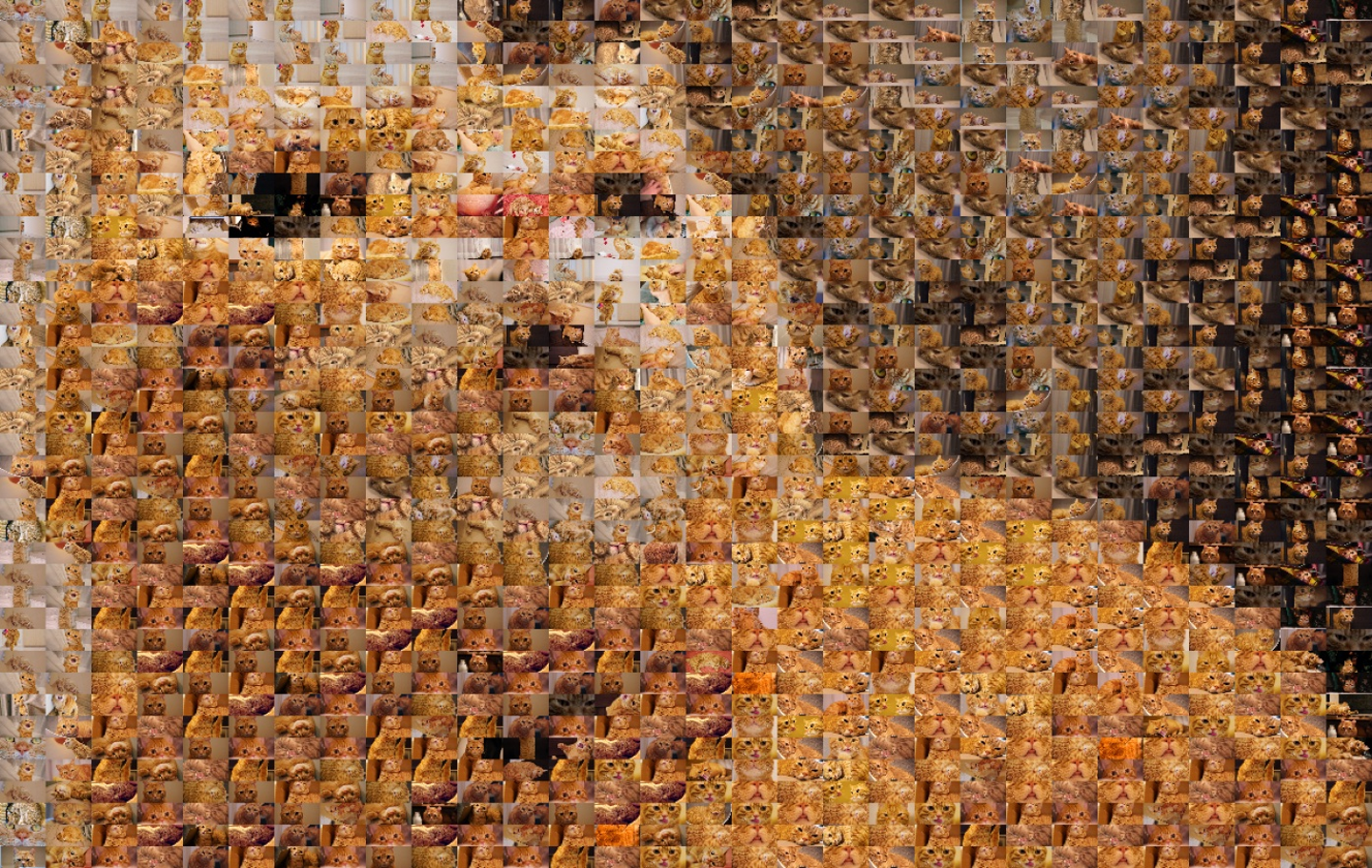 また、原画に近づけようとメッシュを細かく設定しすぎると、モザイクアートとしての魅力が伝わらない。精密さと粗さのバランスを取るのは難しかったですね。何とかメッシュの最適な粒度を見出すことができたのですが、ネコに比べるとかなり膨大な点数を扱うことに。類似度を算出するための処理回数が指数関数的に増え、データの前処理に多くの時間を要してしまいました。