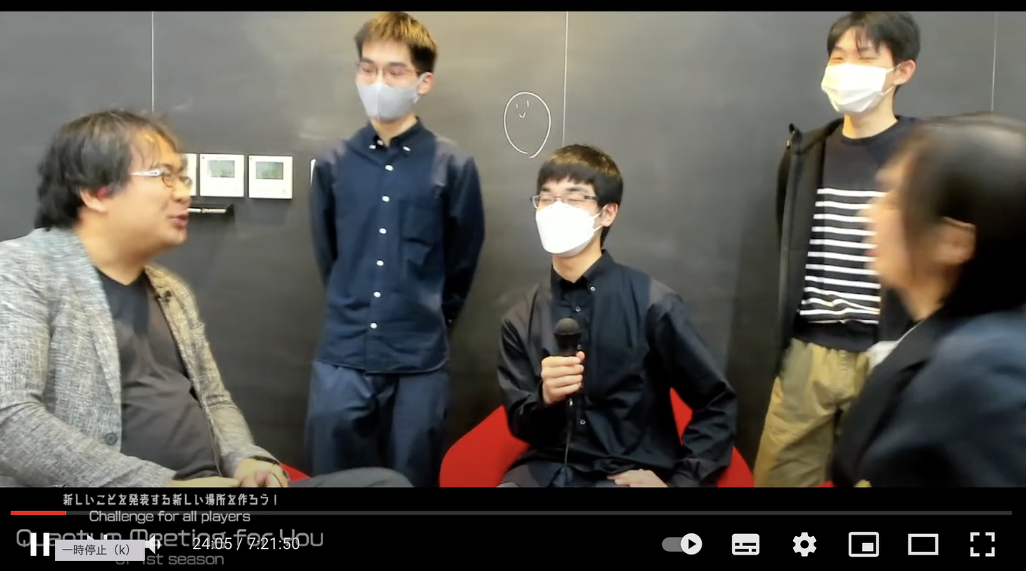 そこで、発表自体はオフラインで行いながら、同時にYouTubeで配信する形にしました。質疑応答をオンラインで受け付けることで、様々な議論ができますし、オープンな雰囲気が生まれます。さらに、私とQC4Uの受講者であり卒業生でもある人にお願いして司会者を2人体制で行いました。発表内容について随時コメントをもらうのですが、卒業生といえど研究者ではない方でしたので、一般の人たちの目線で様々な興味や疑問、気持ちを代弁してもらいました。「この研究のこの部分が面白い!」「こんなことに着眼点を持つんだ!」「研究者の人ってこんなことを考えているんだ!」のように、素朴な反応を持ち込むことができた。そうして、このイベントをマニアックになりすぎないようにすることで、多くの方に発表者の頑張りをストレートに届けることができたと思っています。