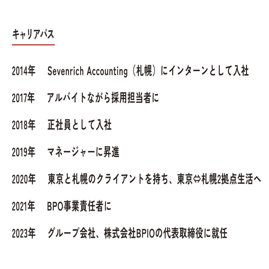——会計スタッフ、札幌事務所マネージャーを経て、現在は経理業務の代行やDX支援などを行う株式会社BPIOの代表をしています。明確な転機はありましたか。