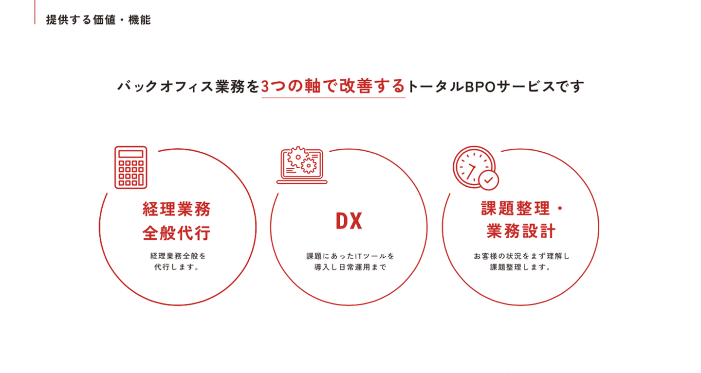 ありがたいことに、クライアントはすでにたくさんいらっしゃって、経理業務代行やDX支援、経理業務の設計など、経理BPO事業部時代と同じくサービスを提供できています。