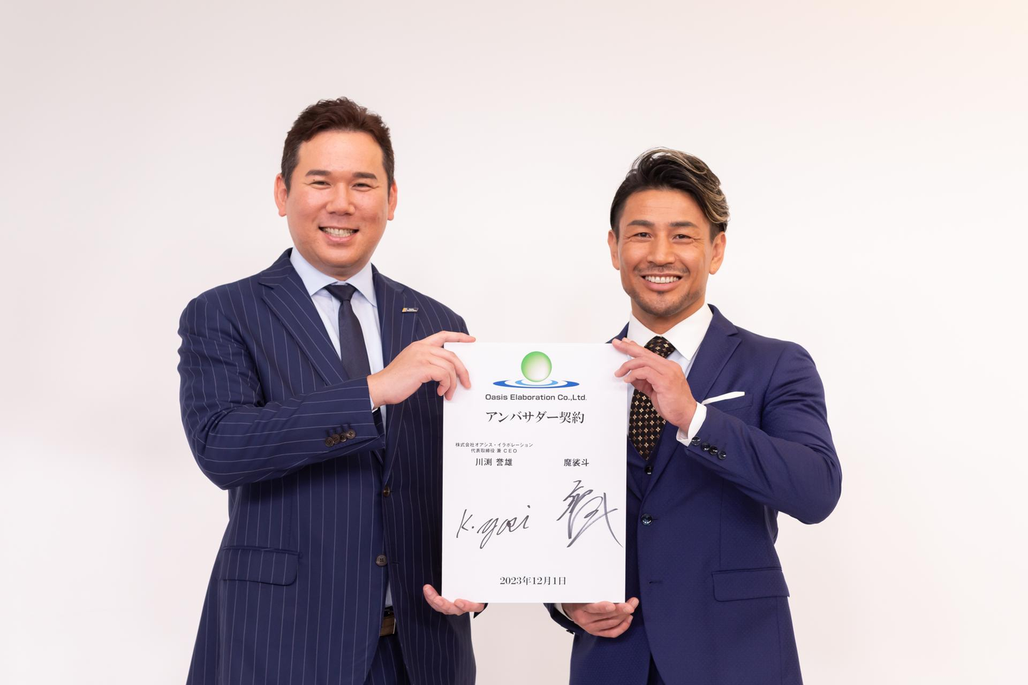「うるおい社会の実現」をミッションに掲げ、都市再生の重要な第一歩となる解体工事業を全国で展開す る当社は、魔裟斗さんと「アンバサダー」契約を結びました。
