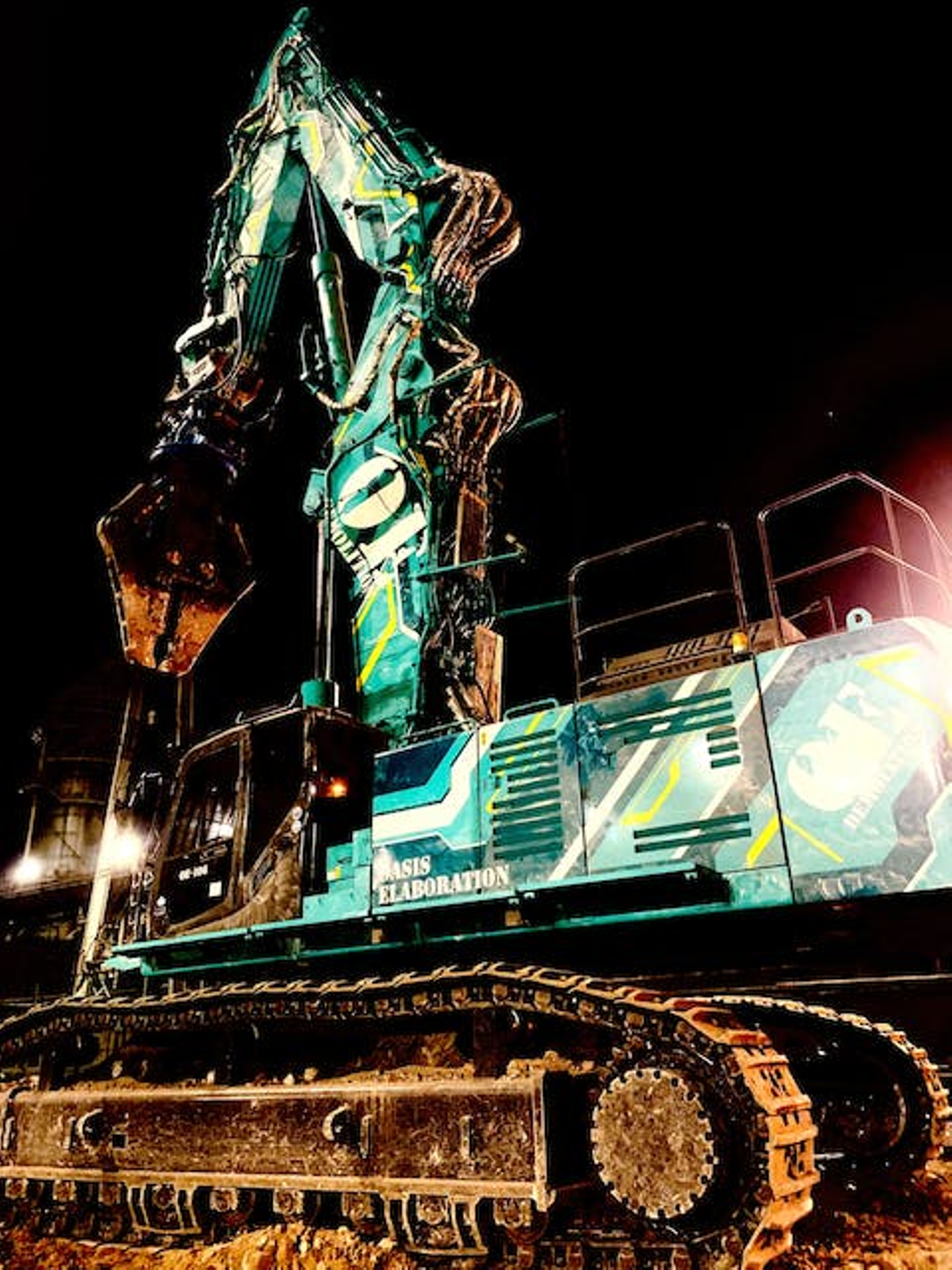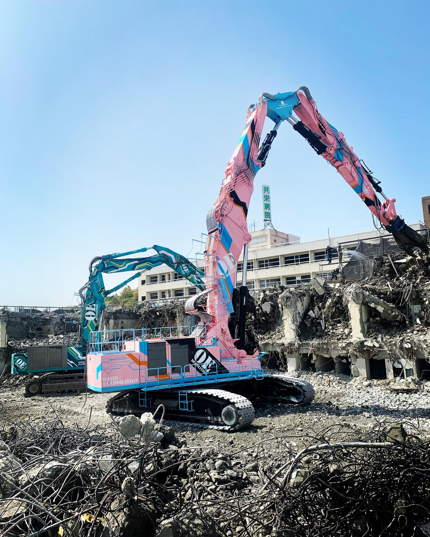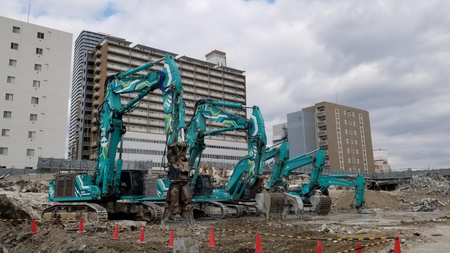 この重機を操縦しているオペレーター、パイロットと言ってもいいでしょう。その腕はピカイチです。鉄骨やコンクリートをハサミのようなアタッチメントでいとも簡単に切ってしまいます!