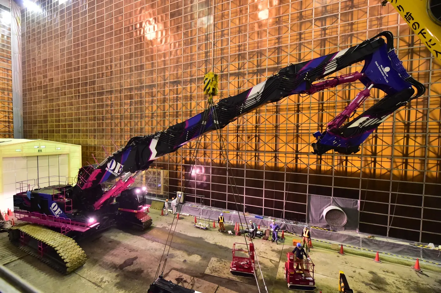 地面や鉄骨を切るハサミのようなもの、地面を打ち砕くものなどそのアタッチメントだけで重さは約3トンになります!重機全体の重量はなんと220トン!