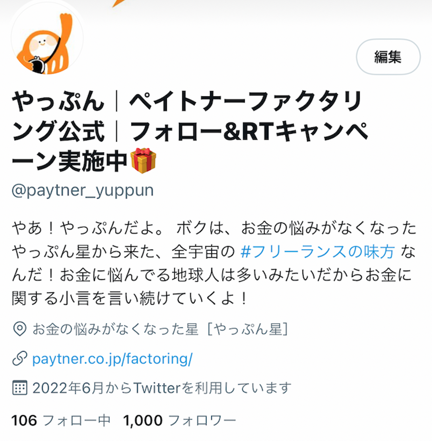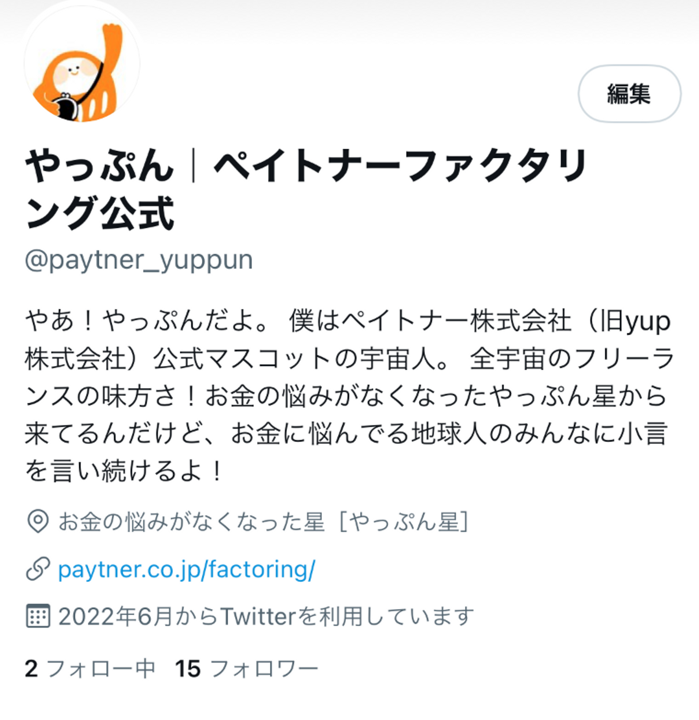 いきなりですが、実は私、今年6月からペイトナー公式マスコットの「やっぷん」の中の人として、Twitterを運用させていただいております。