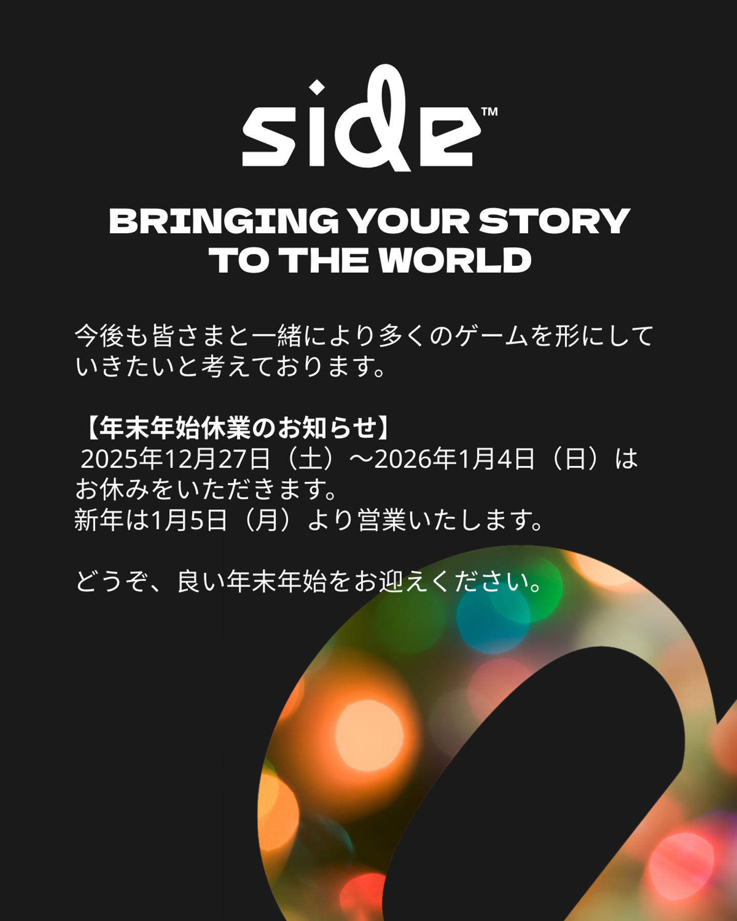 プロジェクトをご一緒させていただいたパートナーの皆さま、そしてSideのチームメンバーすべてに心から感謝しています。今年も本当にありがとうございました。
