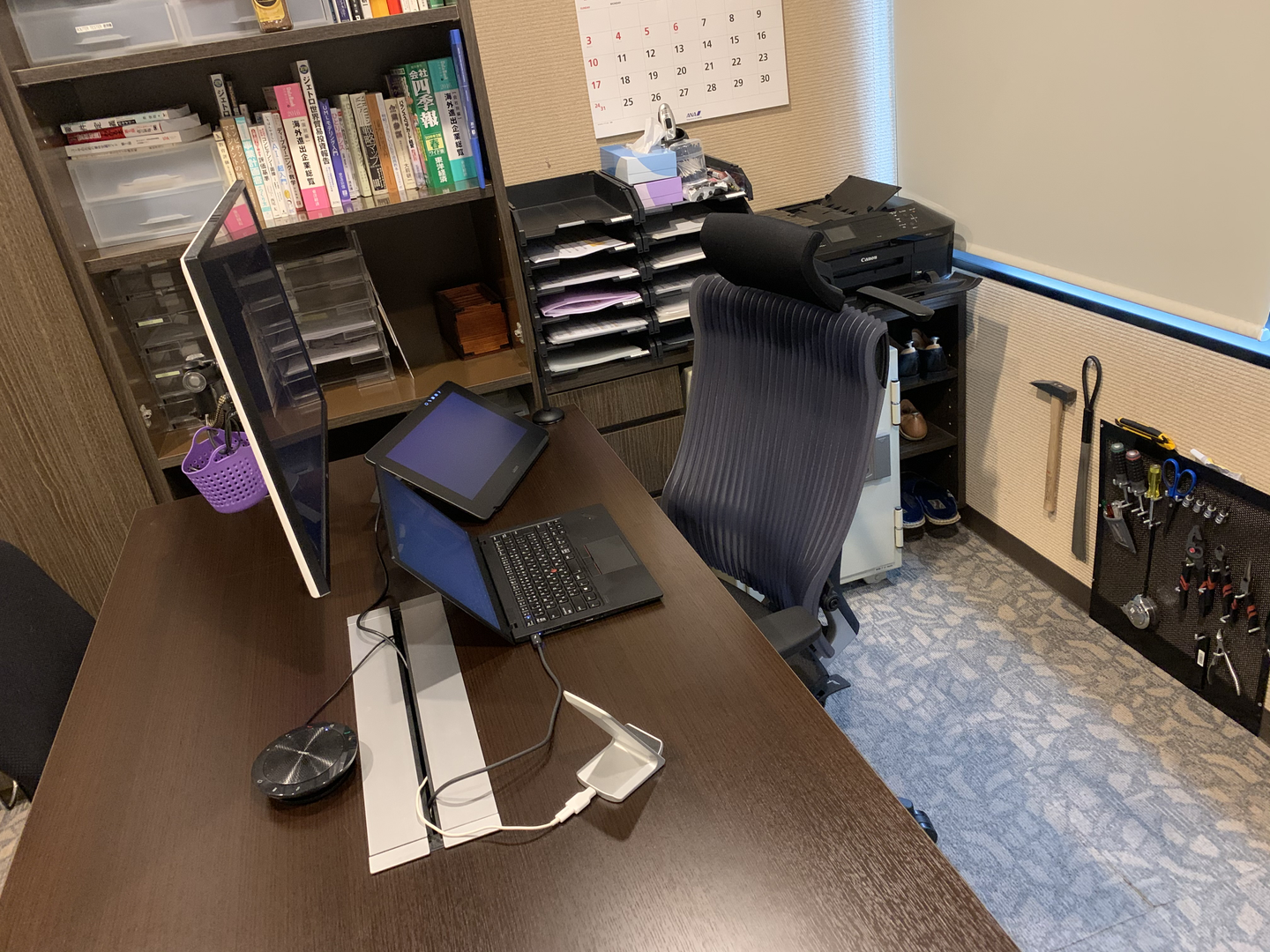 「個人スペースは疲れないデザインを目指したい」と思ったら業務をする席は普通のオフィスになりました。