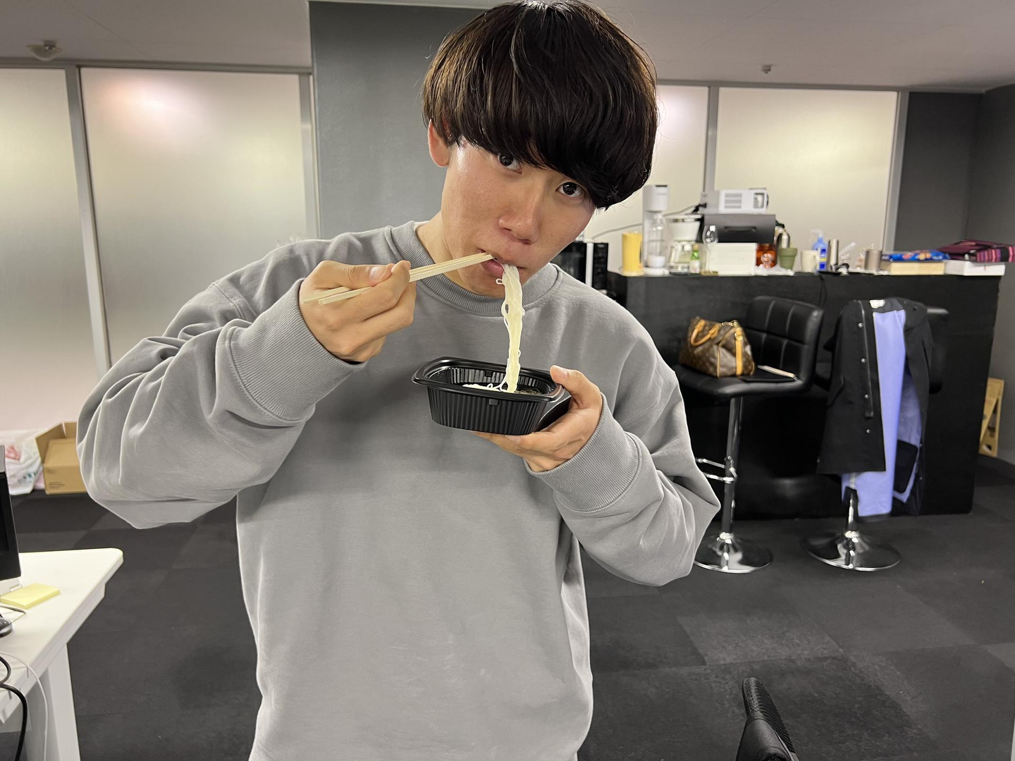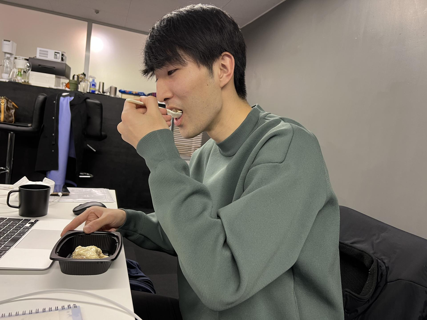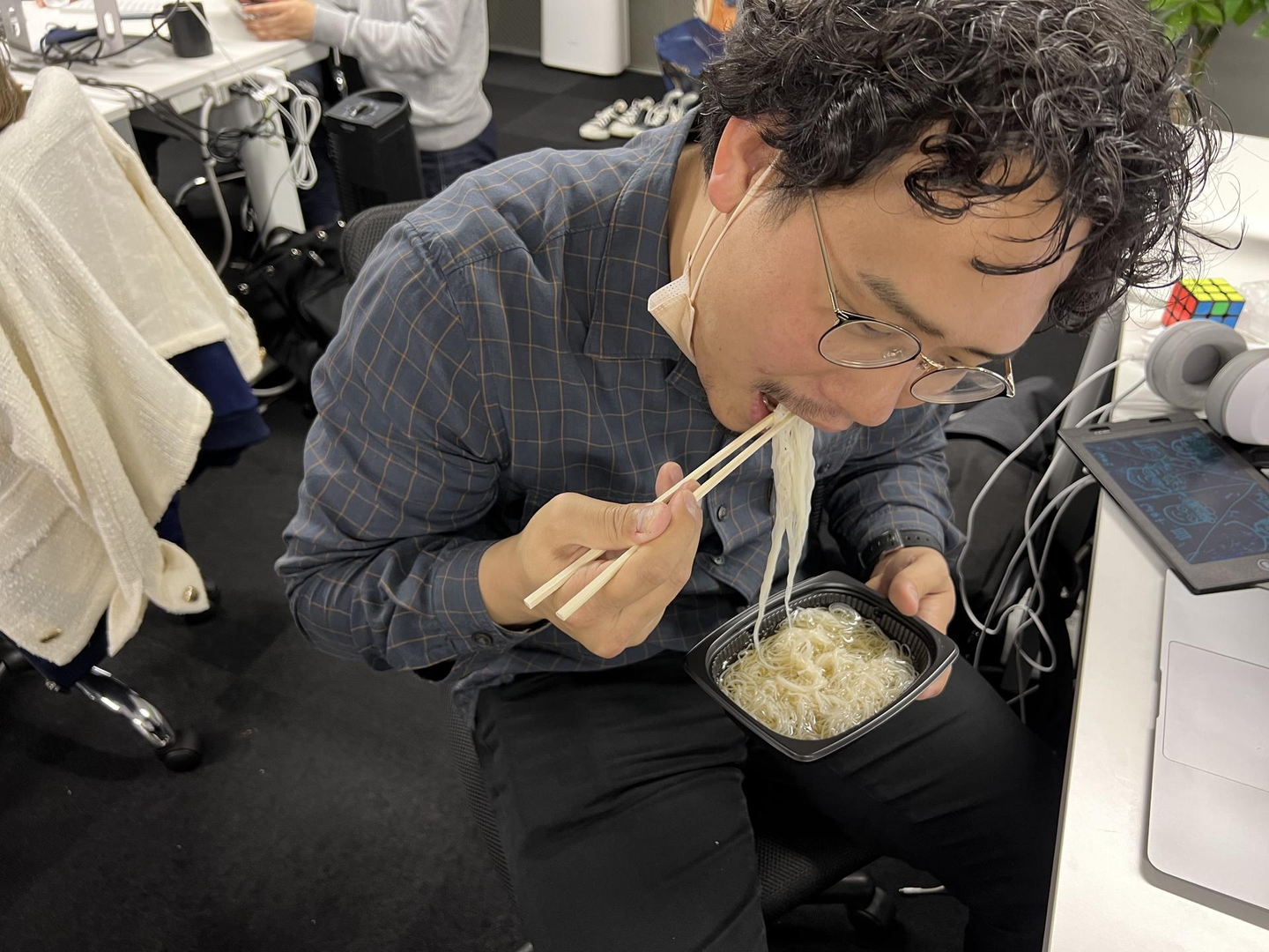 あ、カップ麺を食べている内田さんを発見!