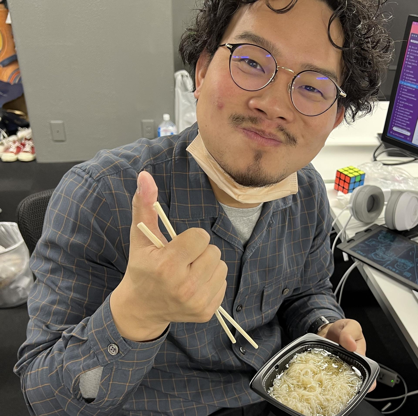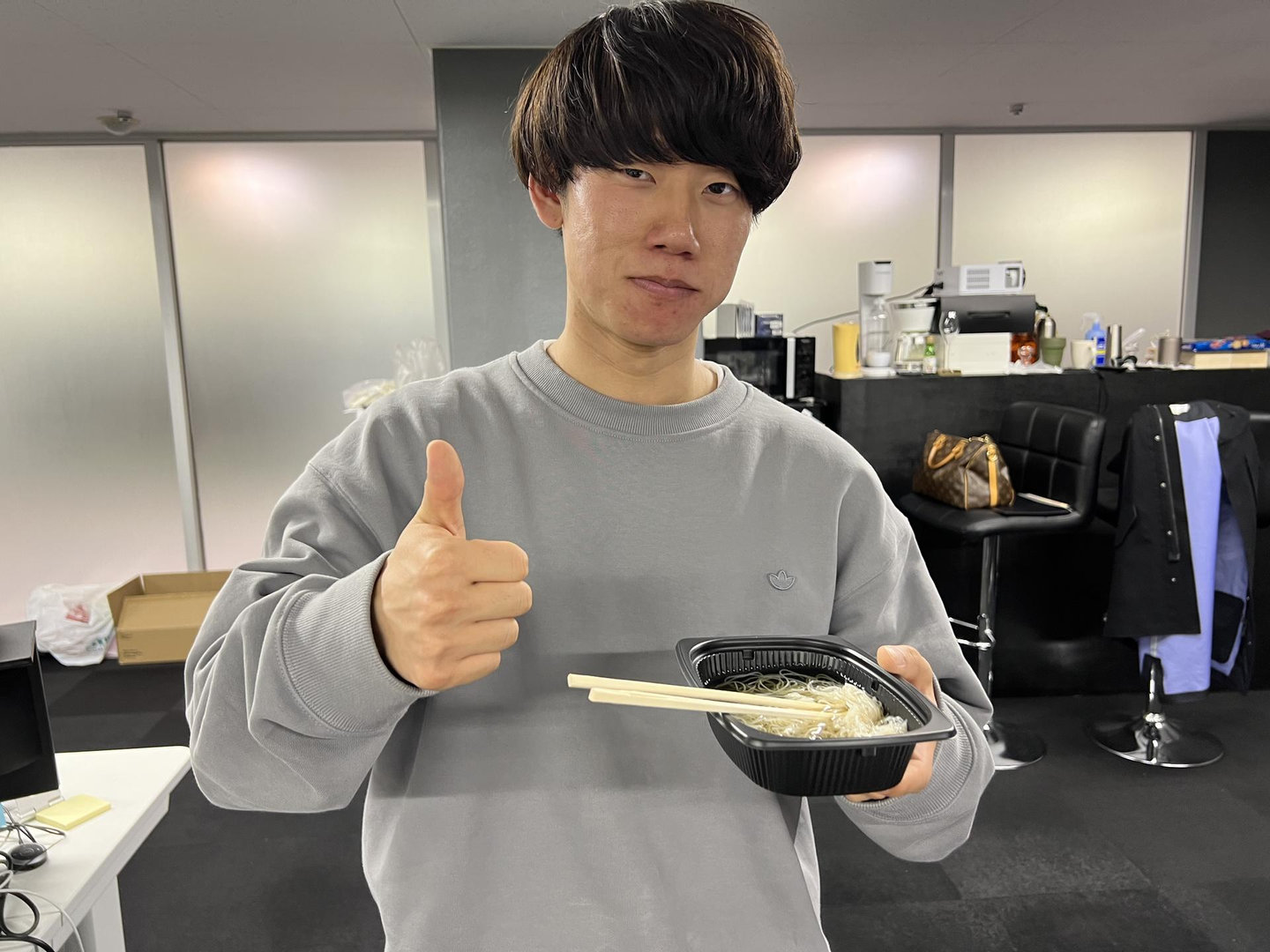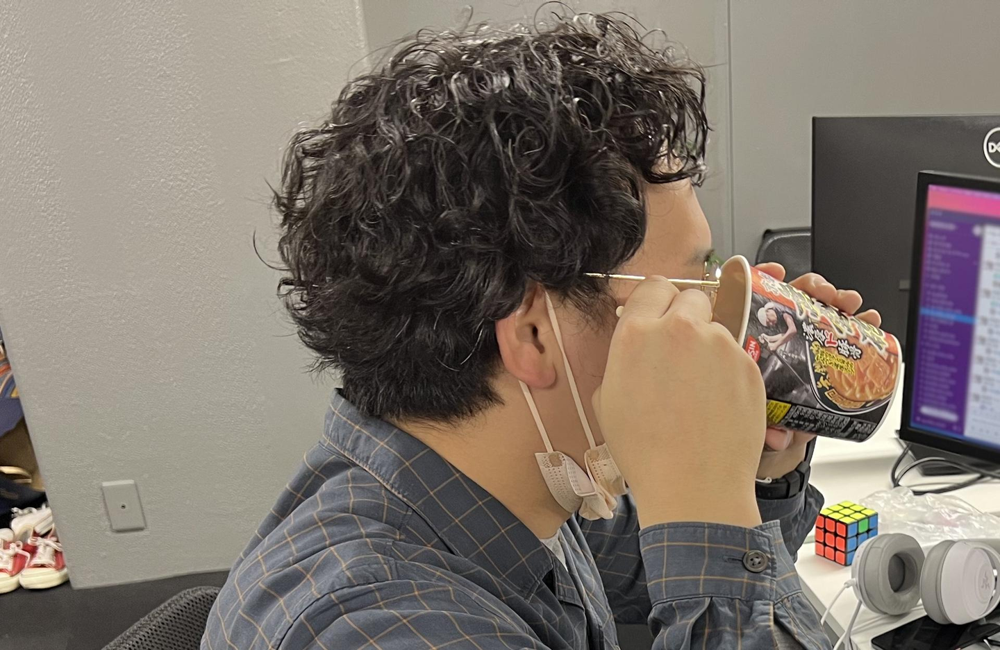 あ、カップ麺を食べている内田さんを発見!