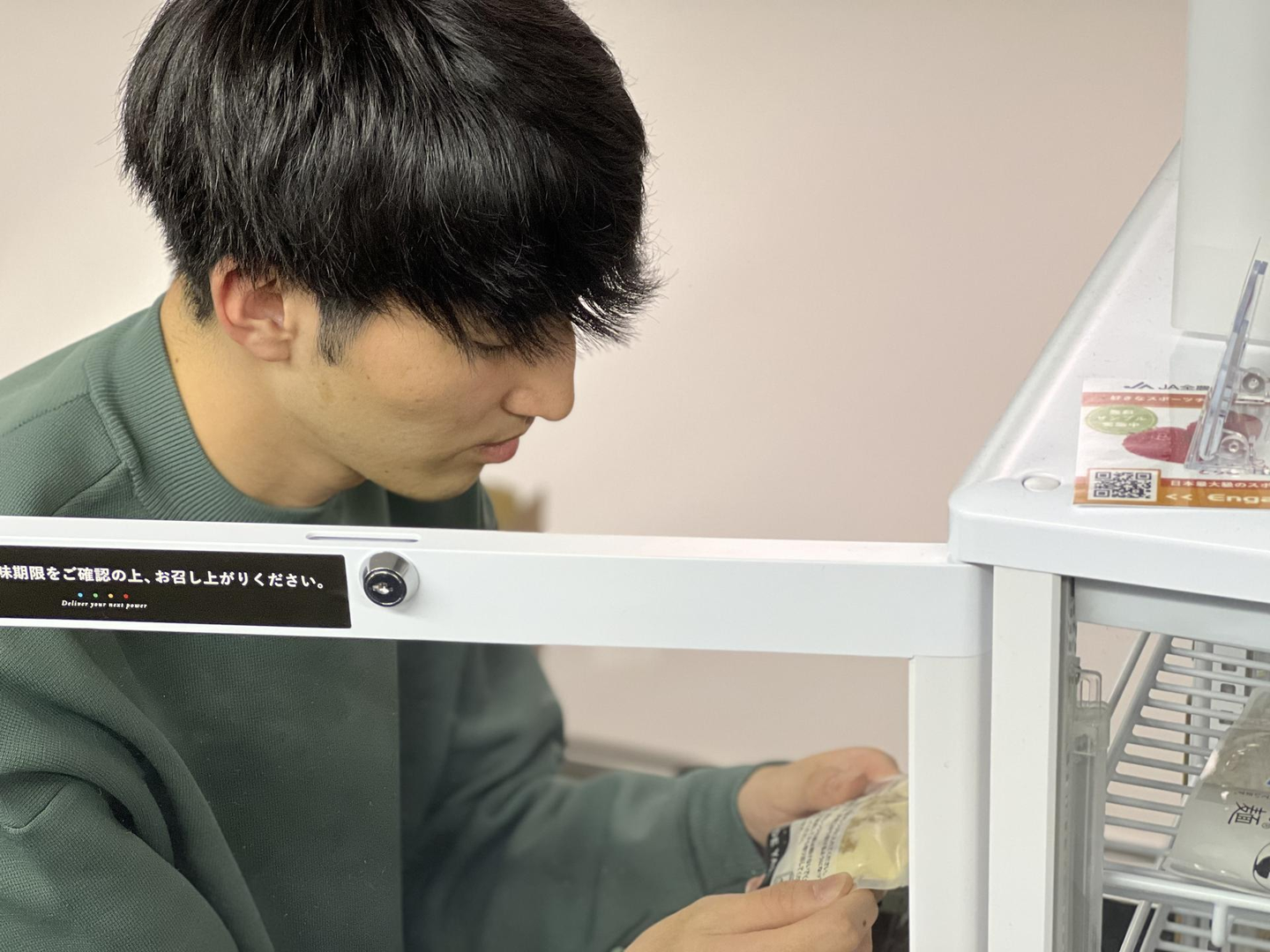 「今日は何にしようかなぁ〜」と物色する新入社員の宮下くん