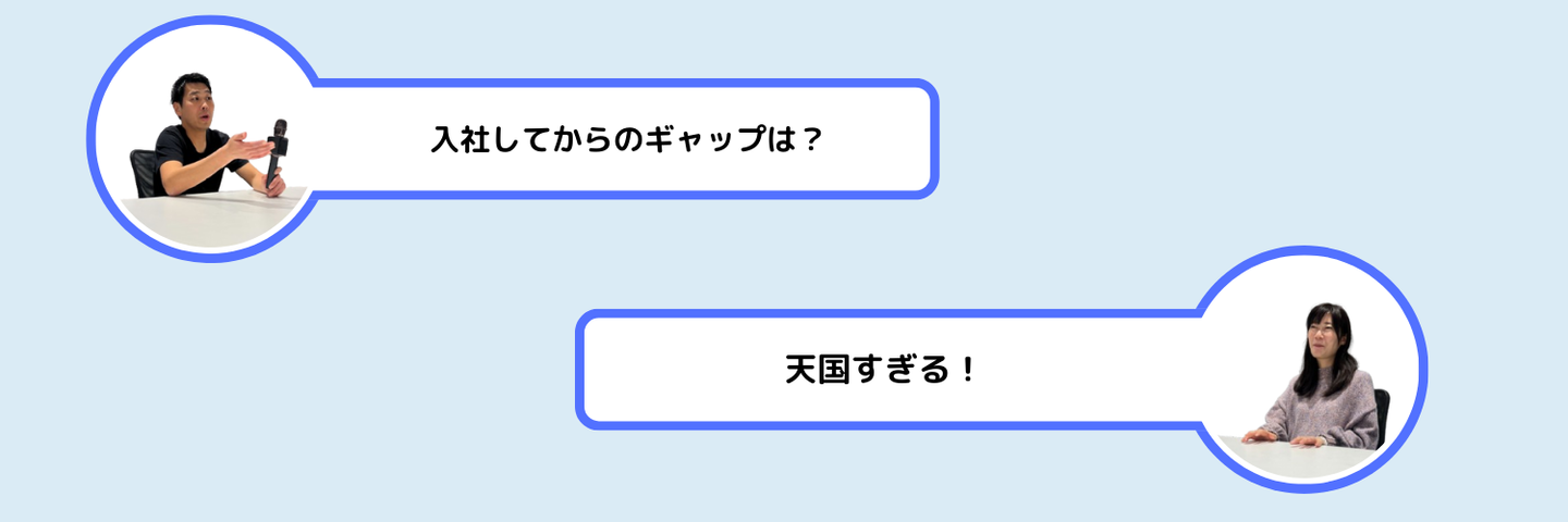 お人柄の良いフランクな方しかいなくて天国すぎて本当に会社かな?と今でも思います。あとは営業職という括りではあるけどみんな助け合って高めていこうという姿勢が全員共通していてとても新鮮でした。