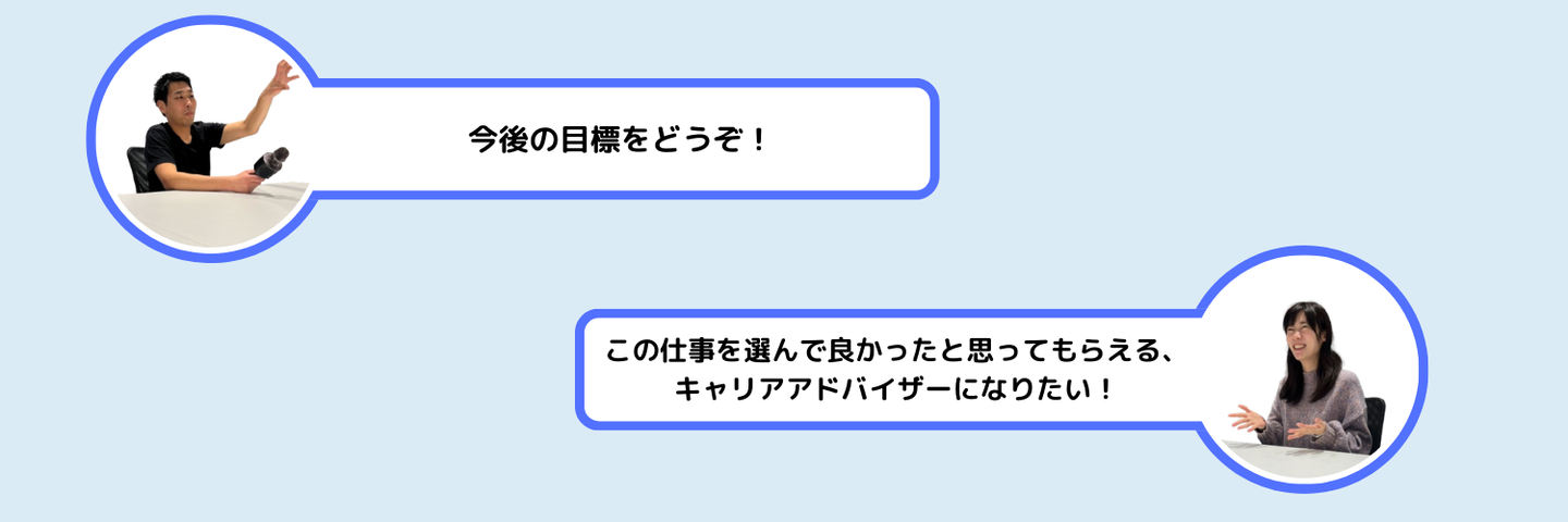 転職支援の関係性だけでなくその後もフランクに連絡できるようなCAになりたいです!