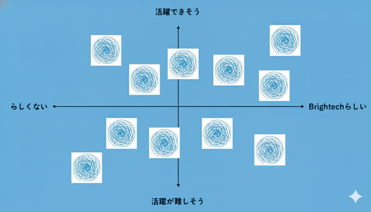 - 「どんな人物がBrightechで活躍できるか」をマトリクス化。