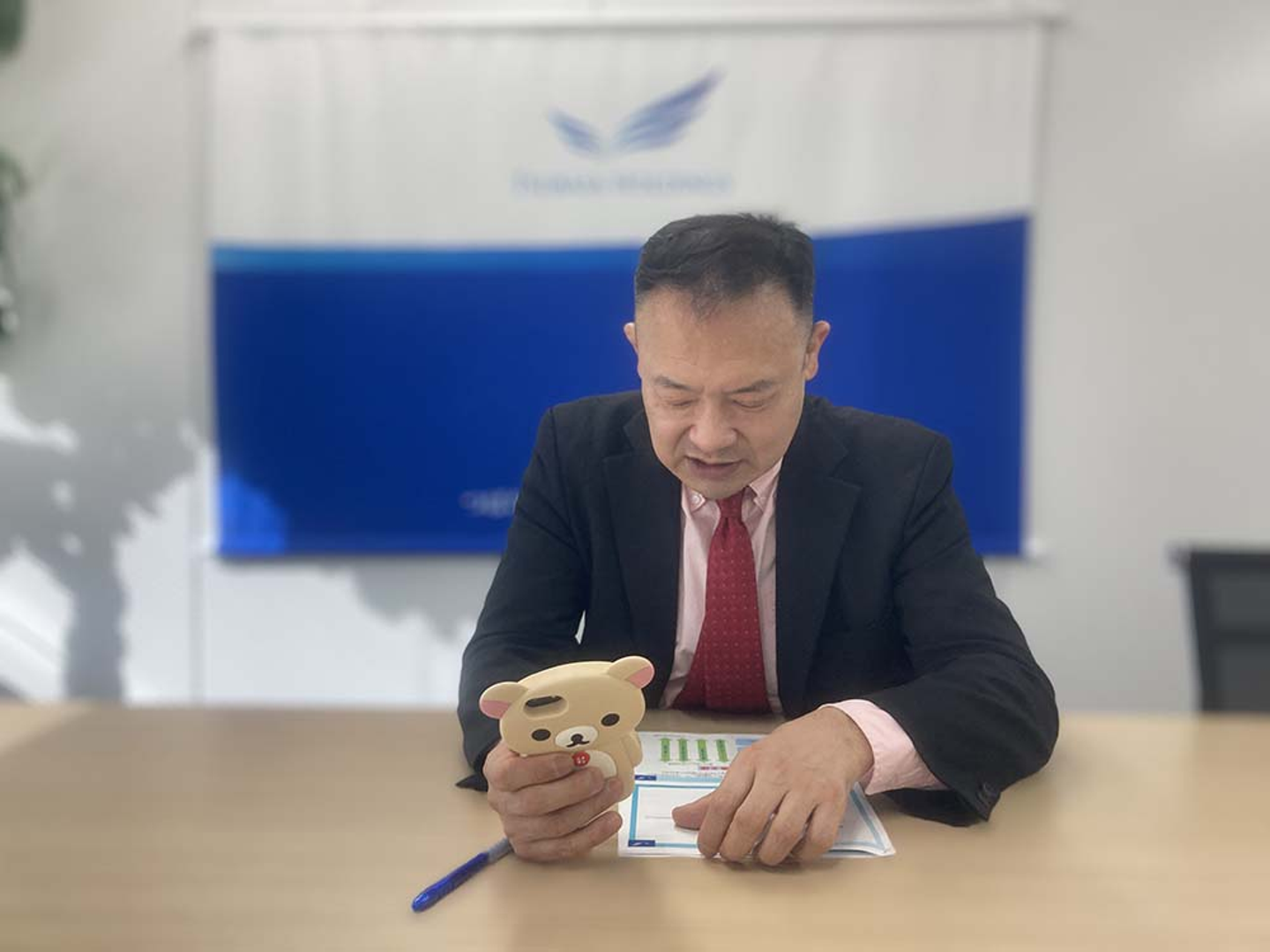 ピンクのシャツにボルドーのネクタイ。手にはリラックマのスマホケース。親しみやすい笑顔と関西弁で話す、つばさホールディングス株式会社(以下、つばさホールディングス)経営戦略室グループIT推進部部長の澁谷豪彦さん。初対面でも印象に残る姿をセルフプロデュースして、「ITのガイドさん」としてDX化に向けた取り組みを牽引しています。