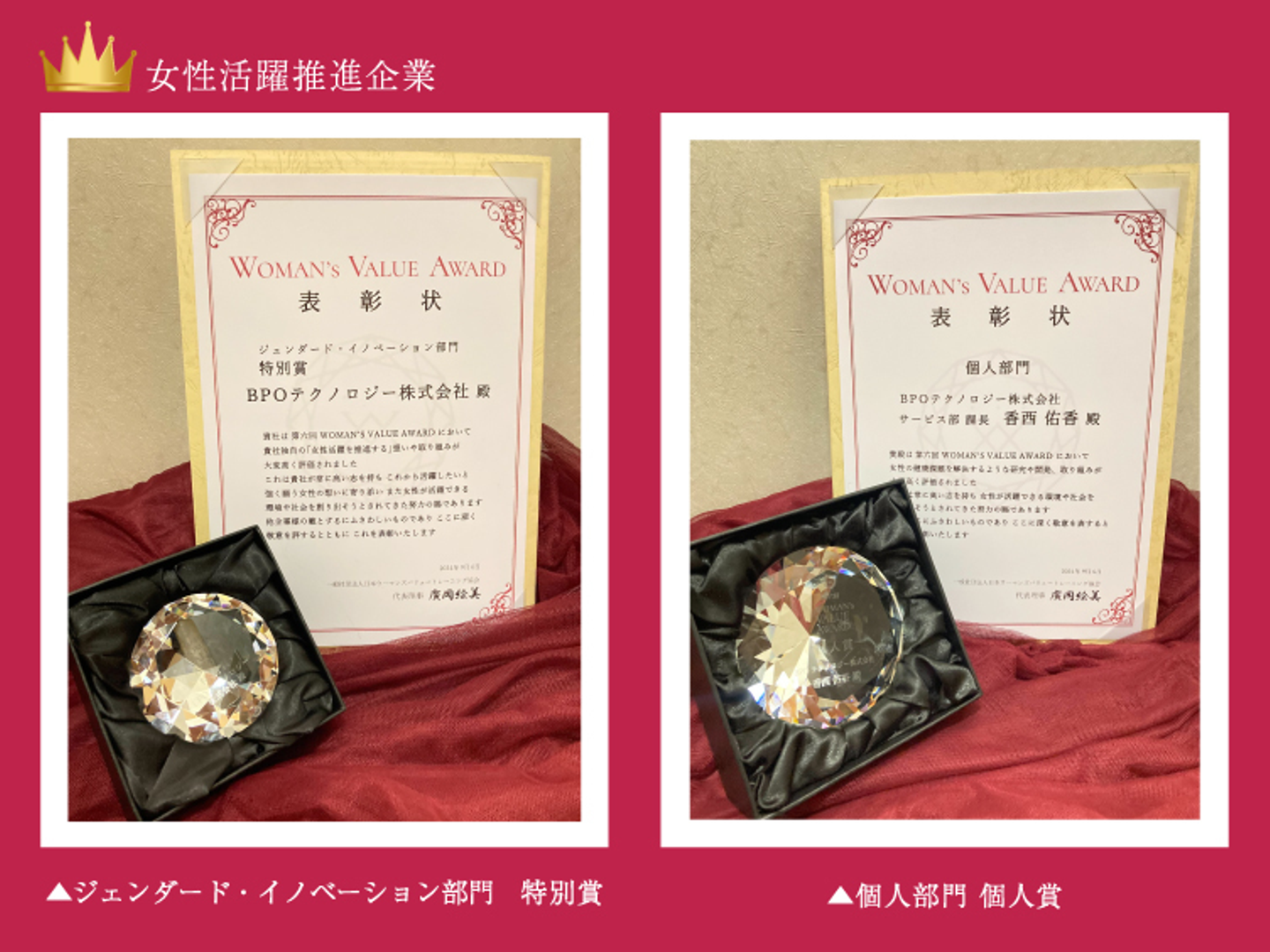 「女性活躍を推進したい」という想いや取り組みをご評価いただき、特別賞の受賞に至りました。