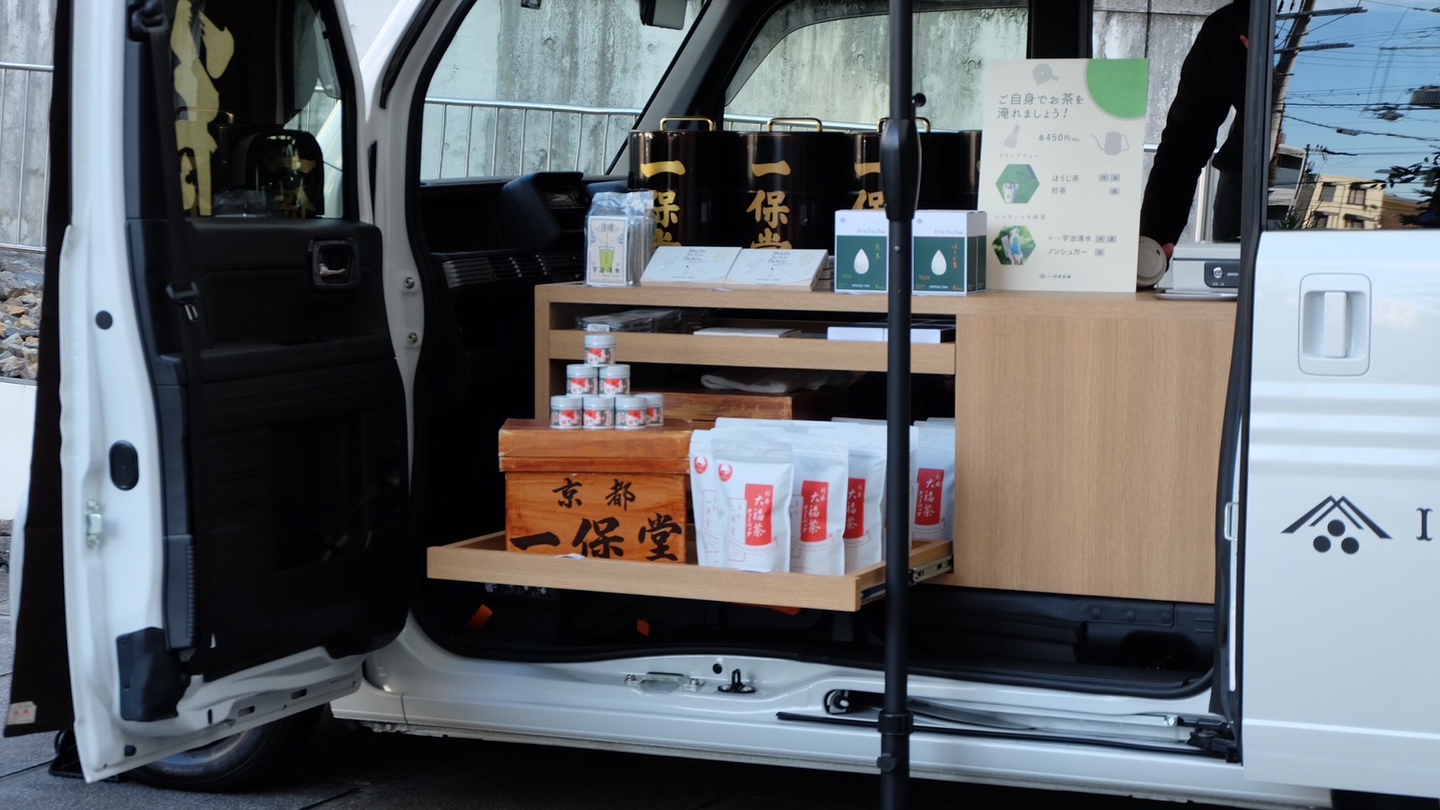 私たちはこの嗜好品としてのお茶をもっともっとお伝えしたく、「対面販売」を大切に思っています。京都本店、東京丸の内店、NY店(現在休止中)、全国各百貨店の売り場や、国内外での催事イベントを運営しているゆえんです。お茶の移動販売車も、この延長線上にあります。どこの店舗でも出会うことが出来ない方。でも嗜好品を暮らしに取り入れたい方。まだまだ沢山いらっしゃるはず。お出会い出来そうな場所を探し、京都からイッポドウカーを走らせて出向いていっています。