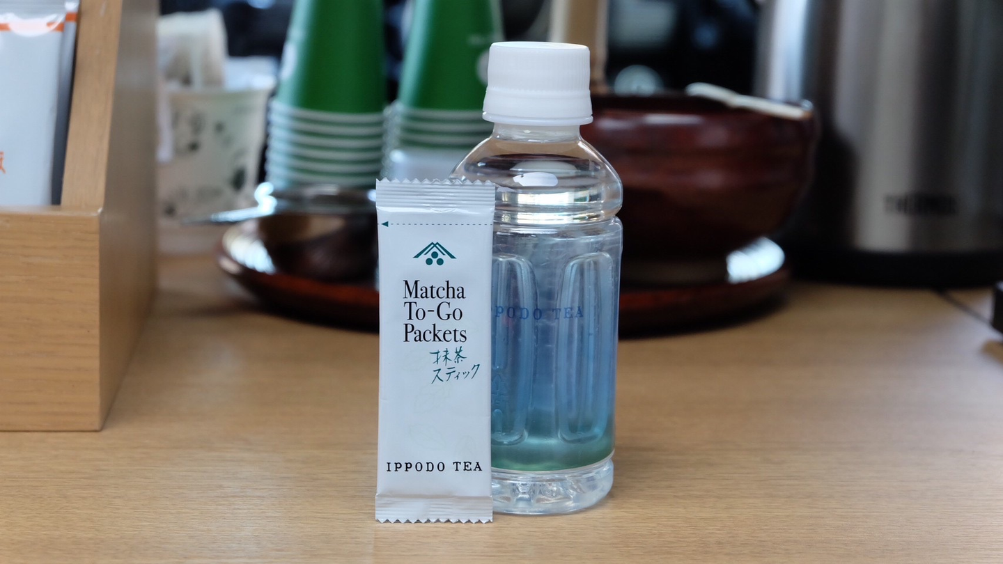 抹茶の1回分スティックと、オリジナルデザインウォーターのセット。抹茶を、もっと気軽に楽しむには?お水とセットで販売し、その場で抹茶を作れたら面白いのでは?とは前々からあるアイデアでしたが、「移動販売車」が出来たことで、一気に実現しました!お客様がご自身で抹茶を作る、セルフテイクアウトのメニューで大活躍しています。新たな取組をスピーディーに導入でき、お客様のリアルな反応をキャッチできる場としても、移動販売車はとっても有用です。