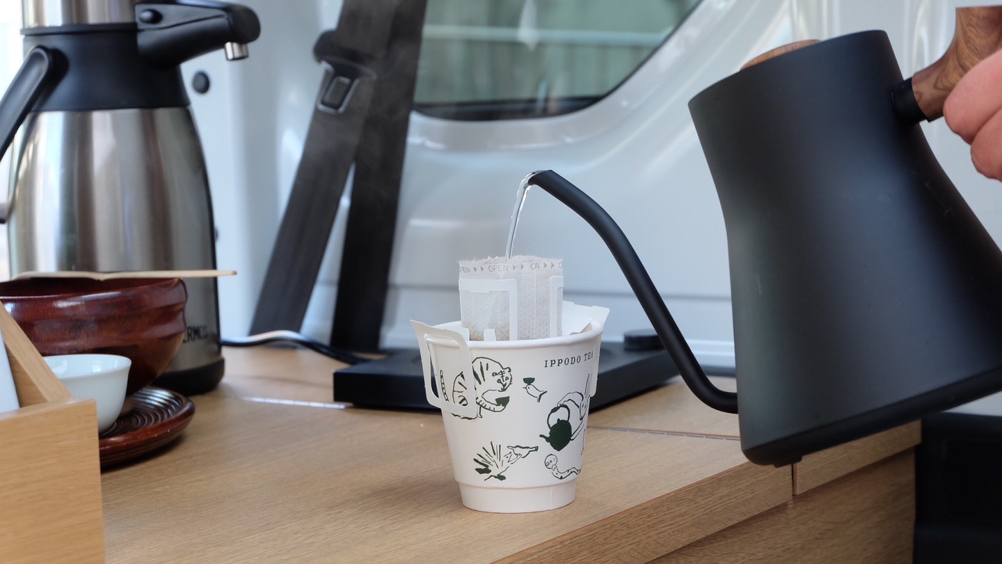 移動販売車で美味しいお茶が飲める。お客様は嬉しいかもしれないけど、自分で美味しくお茶が淹れられたら、もっと嬉しいんじゃないか。「お茶の淹れるところからご自分で」楽しんで頂く、それがイッポドウカーで取り組んでいるセルフテイクアウトです。