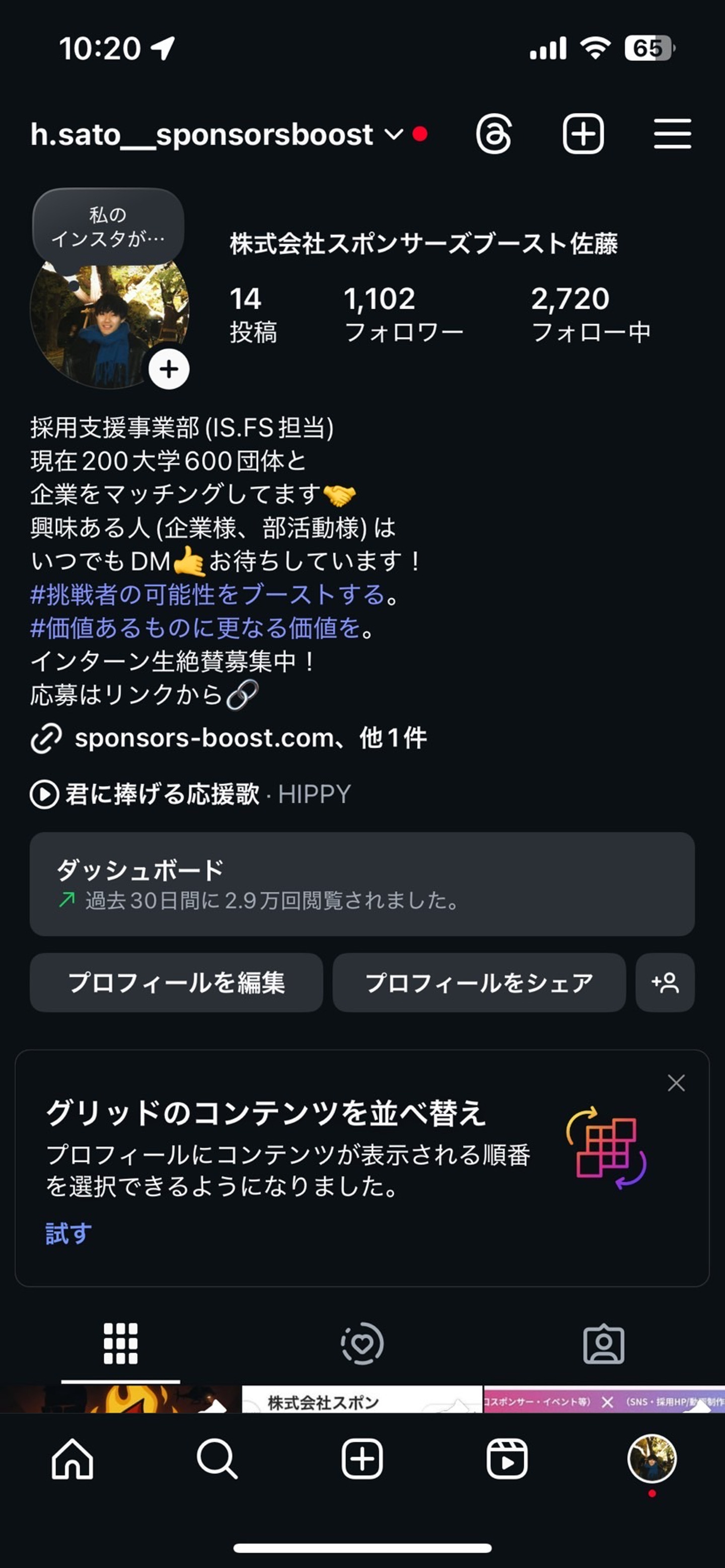 はい。8月にInstagramを開設して、9月には1000人のフォロワーを獲得しました。ゼロからのスタートでしたが、採用広報や部活動連携、インターン募集など、いろんな活動の入口になるアカウントにしたいと考えていました。