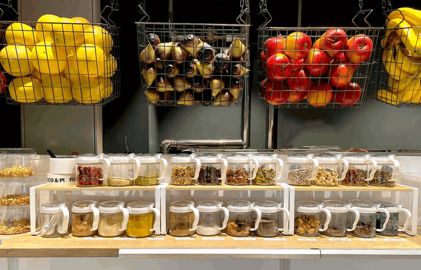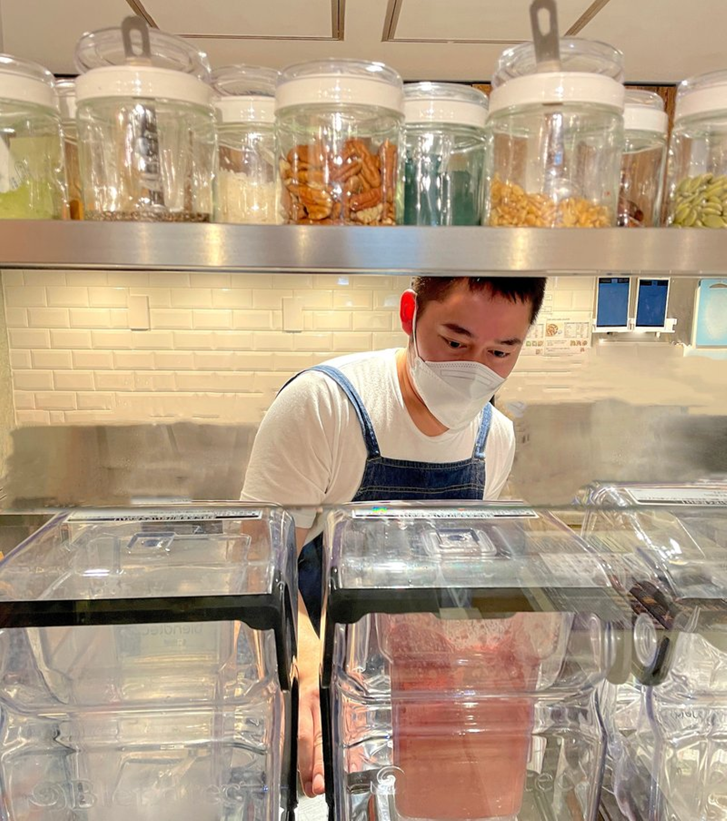 外国人のお客様は、スムージーをオーダーした後に、アーモンドやらターメリックやら、ほいほいと選んで苦ともせず自分流にカスタマイズしていきます。