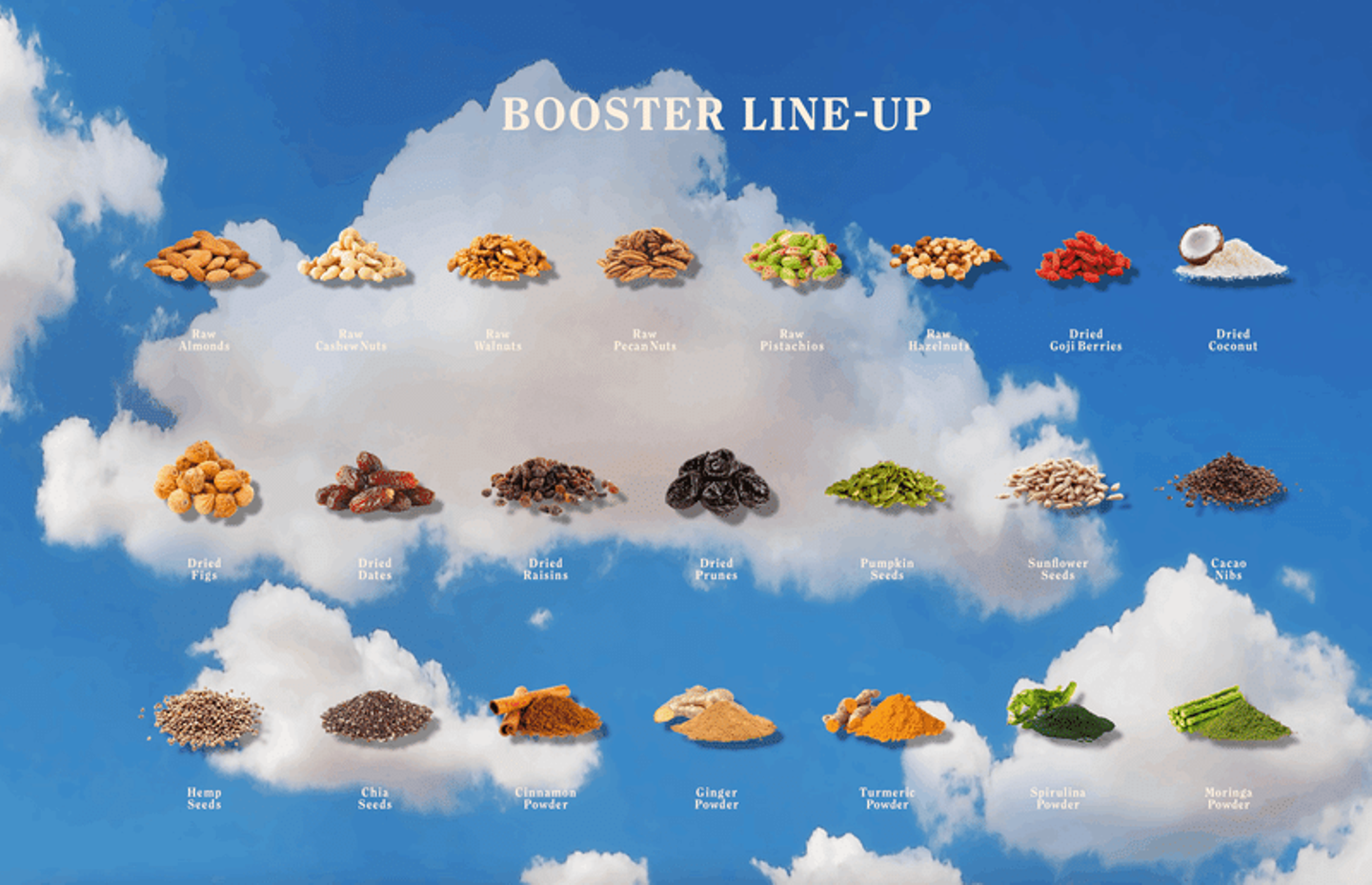 ブースターは、どれもとっても栄養価が高く、いわゆる「スーパーフード (※3)」と言われるものも集まっています。