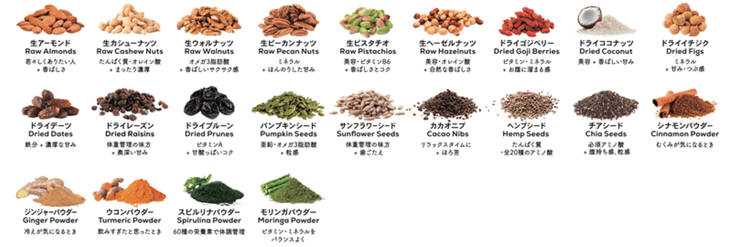 ブースターは、どれも栄養価の高い食材ばかり。