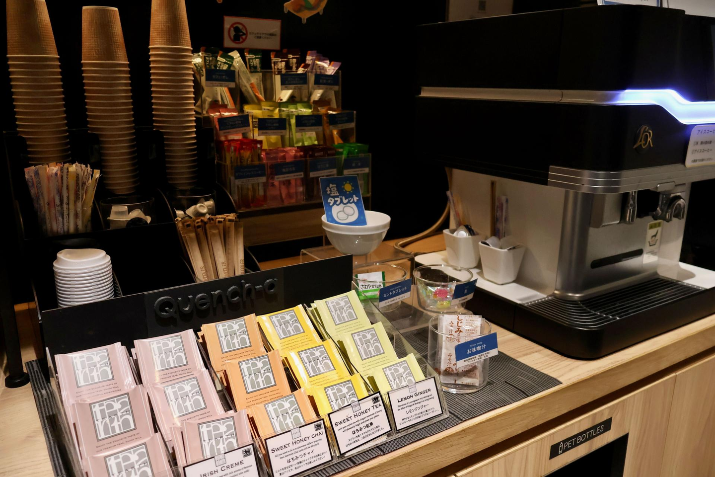 ラウンジにはフリードリンクが設置されており、好きなものを選ぶことができます。