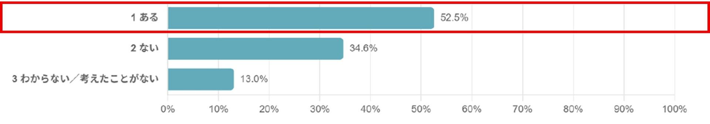 AIに「応援してほしい」「相談したい」と思ったことがある人は52.5%と半数を超えました。一方で、そうした期待を持たない層も一定数存在しており、AIに求める役割には幅があることが示されています。