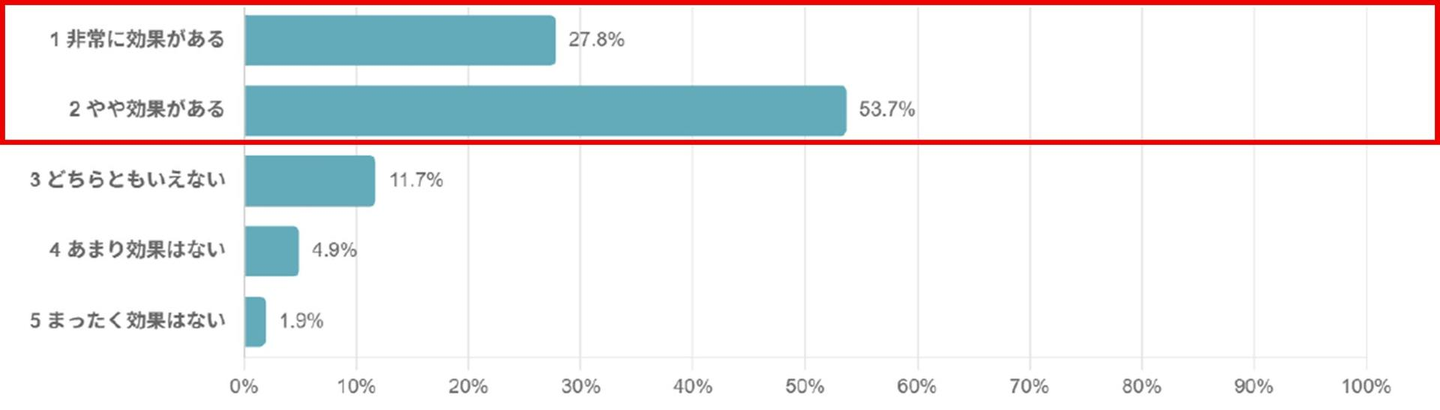 応援や肯定が気持ちの回復に効果があると感じる人は81.5%と約8割にのぼりました。効果を感じないとする回答は6.8%にとどまり、第三者からの関わりが前向きな行動の後押しになると捉えられています。
