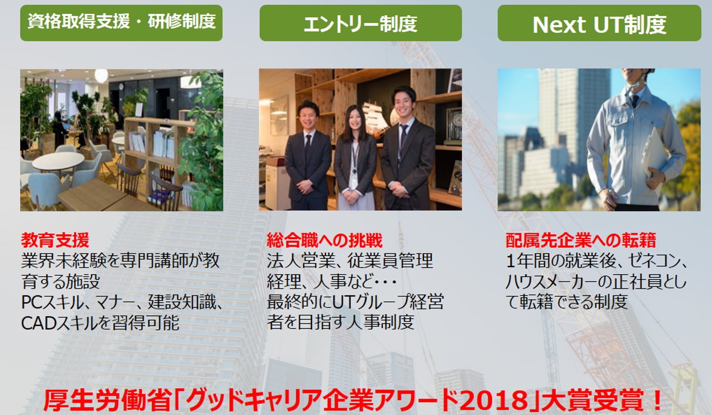 充実した制度と教育のフォロー体制はUTコンストラクションの強みです。