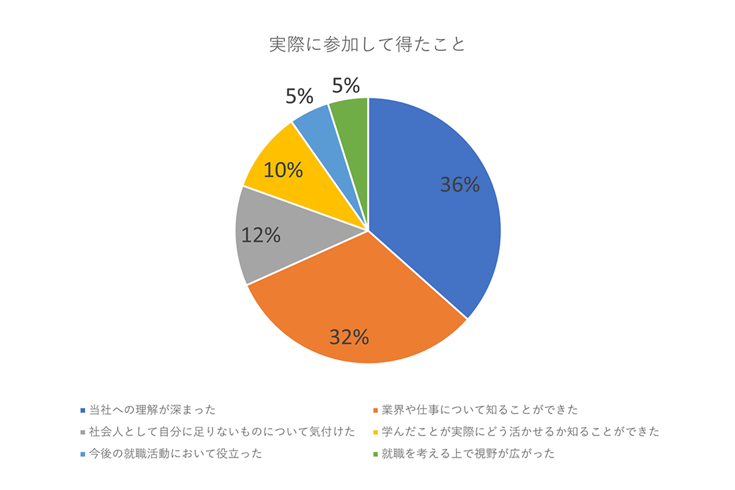 また、社会人として足りないものに気付くきっかけになったり、現在学んでいることをイメージできるようになった学生さんも22%を占めていました。