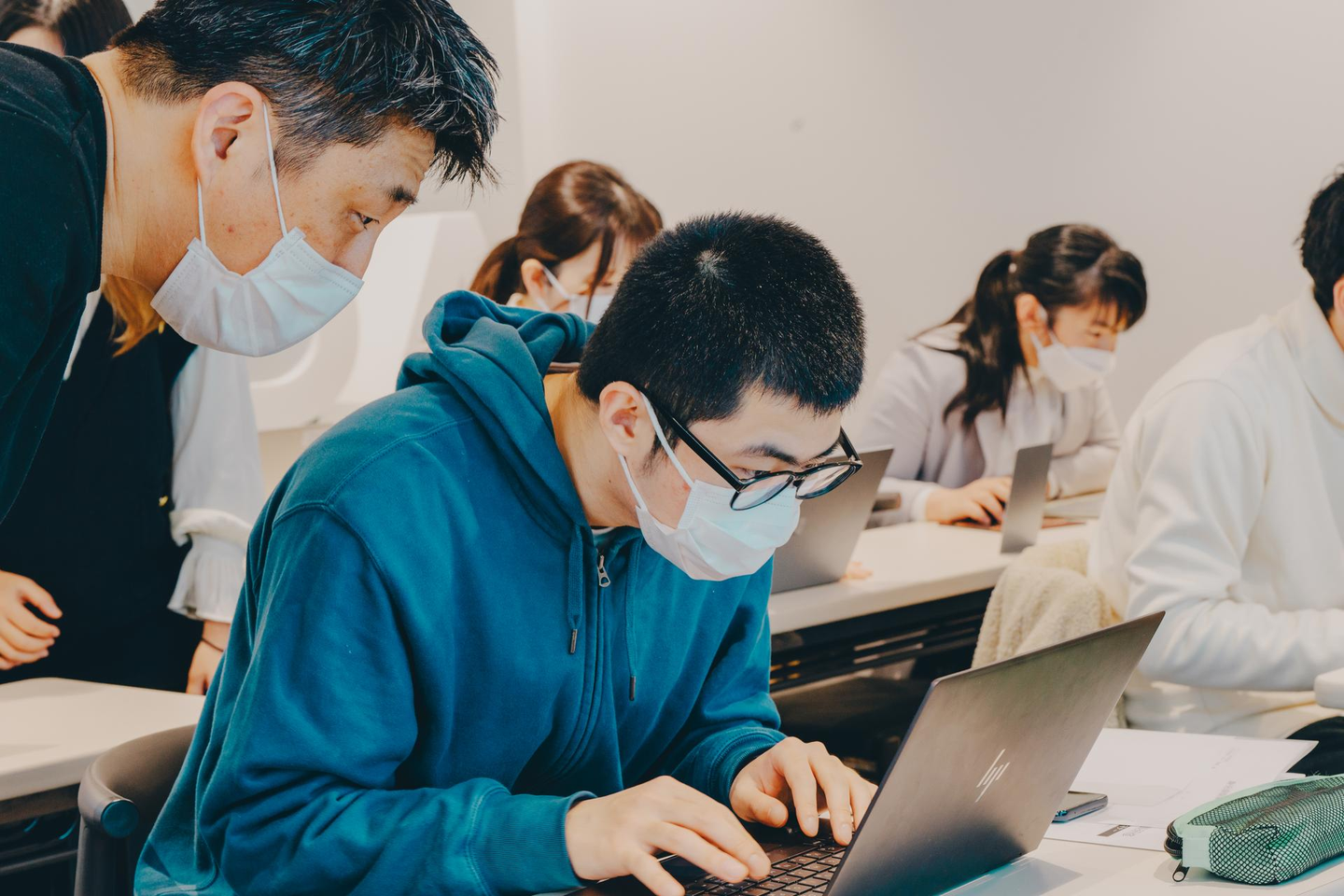 この研修では、入社して1年目の先輩方が講師役を務めてくれました!プログラミング演習サイトを使用し、お題に対して自身で考えてコードを書いていただくのですが初めて行う演習問題に躓くことも。先輩社員が横で丁寧に教えてくれ、内定者も積極的に質問をすることで有意義な時間となりました!