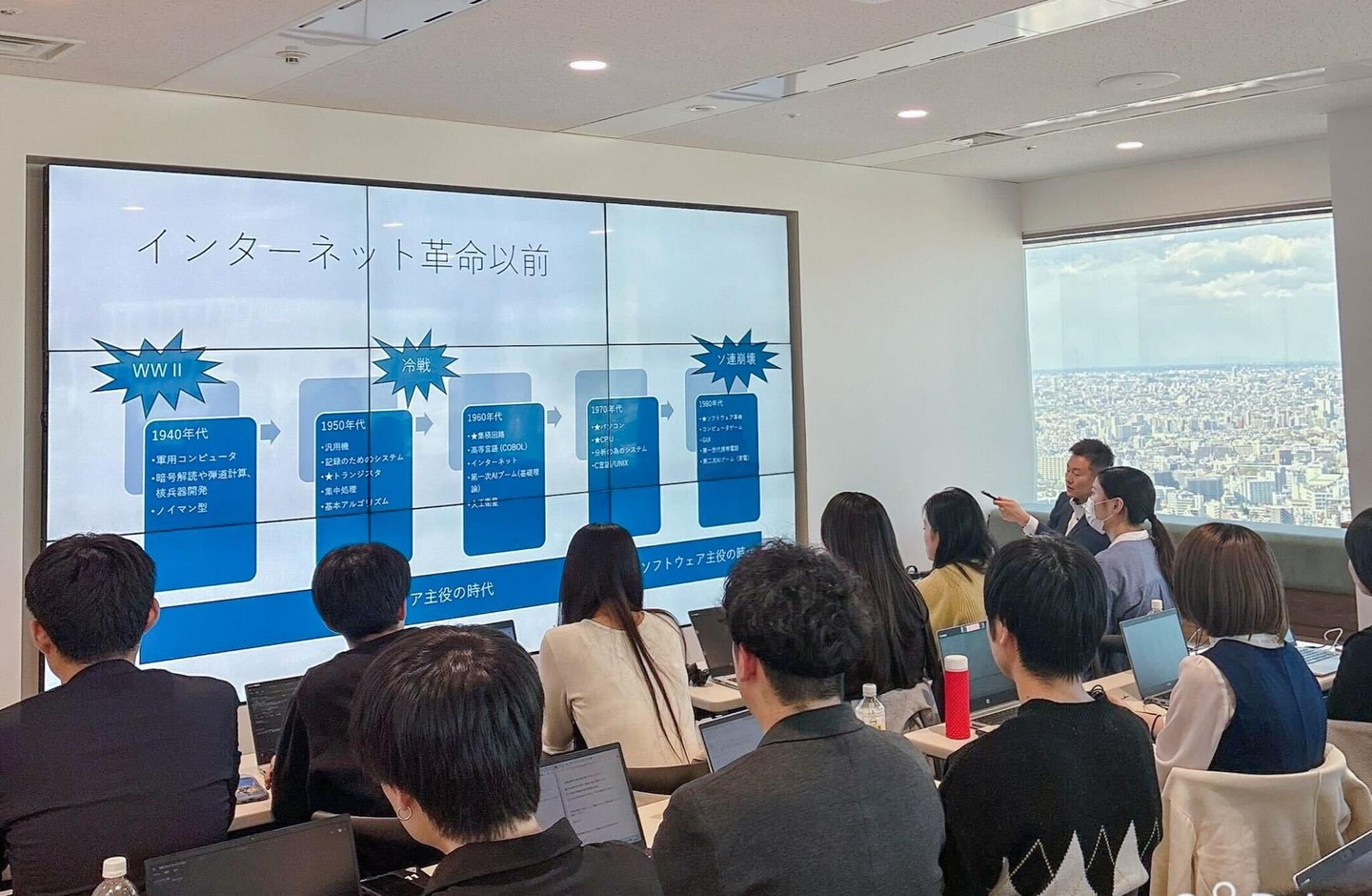 当社のIT基礎研修は、代表の鈴木自らが実施します。基本から応用まで幅広くカバーします。鈴木の豊富な経験と知識を直接学ぶことができるこの研修は、新卒社員にとって非常に貴重な機会。専門的な知識を深めるだけでなく、実務に直結するノウハウを習得できるので、即戦力として活躍できる基盤を築けます!さらに、先輩社員が実際に担当しているプロジェクトや案件の紹介も行い、リアルな業務内容に研修期間中に触れていただきます。