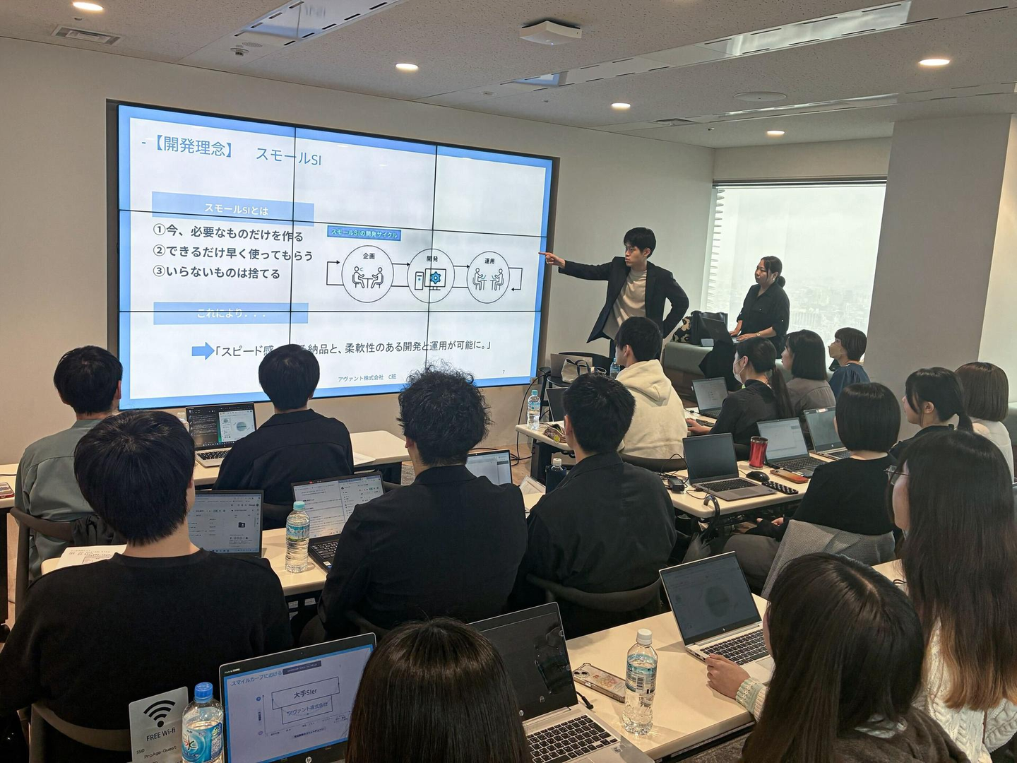 ビジネスマナー研修では、『社会人の基礎となるビジネスマナー』を学んでいただきます。ビジネスマナーを学ぶ目的から勉強し『社会人と学生の違い』『正しい敬語の使い方』『ビジネスメール・電話』『名刺交換』といった基本的なマナーや「タイピング・Excel・PowerPoint」など社会人に必要なスキルを身につけることができます!一方で技術研修では、当社代表の鈴木が自ら行う「IT基礎研修」や考える力を身につけるような「ロジック研修」などなど様々なコンテンツをご用意しております。研修の最後には「仮想プロジェクト」といって、実際の開発を想定した模擬開発にも取り組んでいただきます!